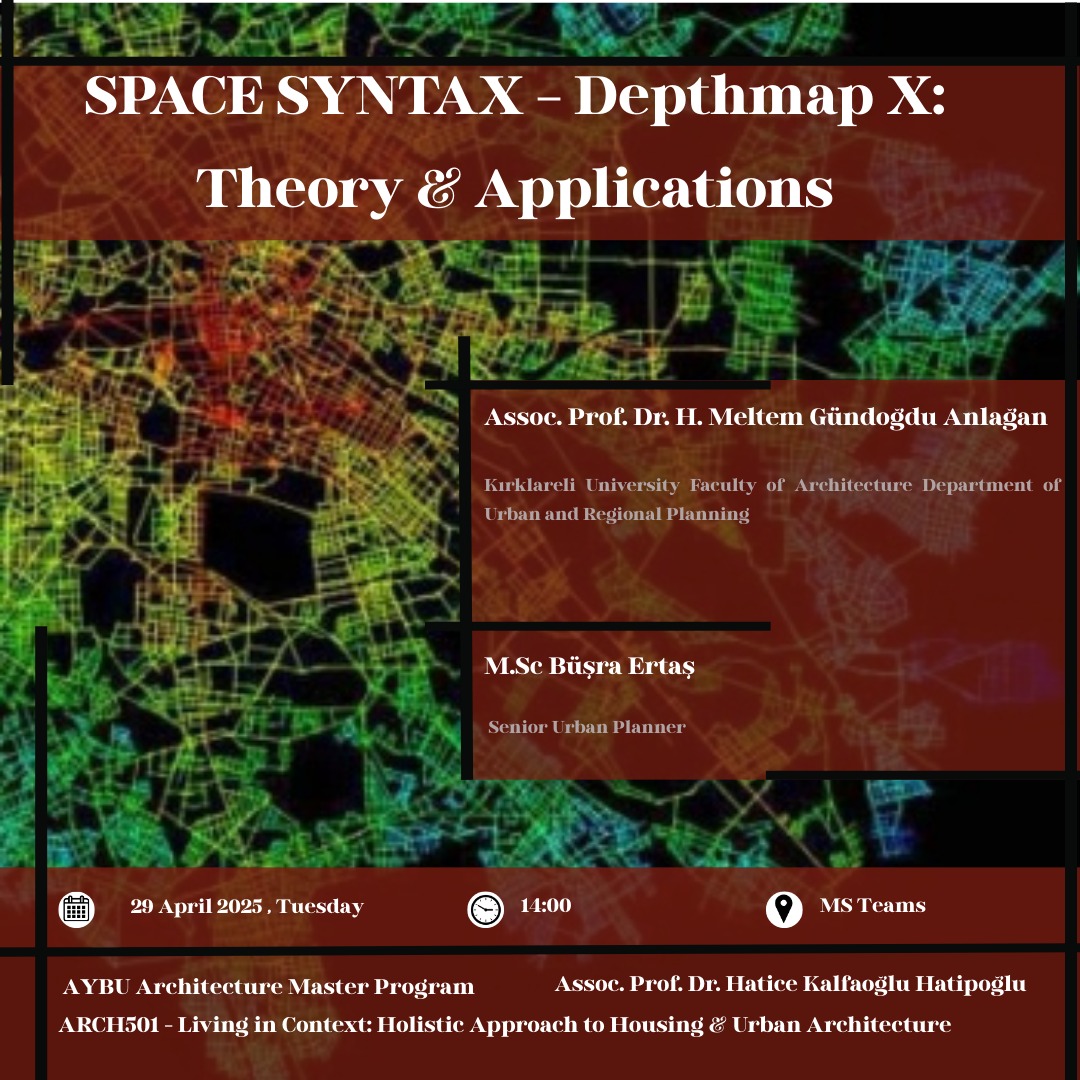 We are pleased to announce that Assoc. Prof. Dr. H. Meltem Gündoğdu Anlağan from Kırklareli University and M.Sc. Büşra Ertaş will deliver a seminar within the scope of the AYBU Architecture Master's Program course ARCH 501 – Living in Context: Holistic Approach to Housing & Urban Architecture, coordinated by Assoc. Prof. Hatice Kalfaoglu Hatipoglu.