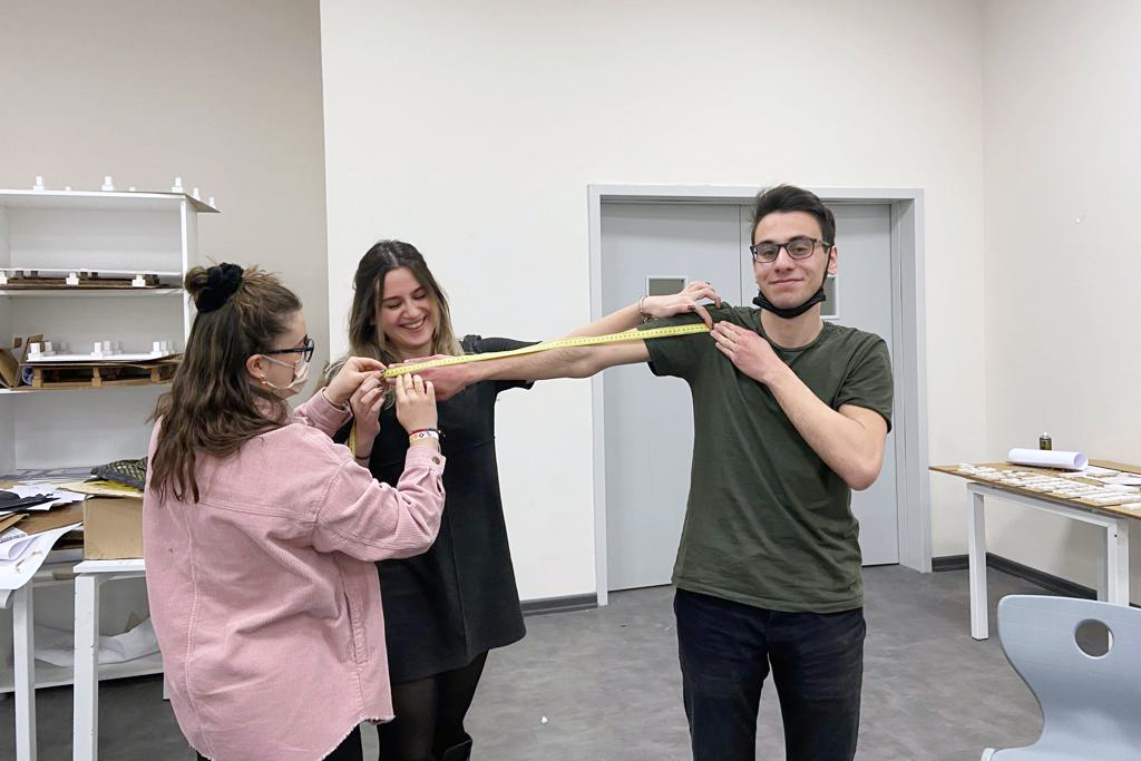 In the workshop held jointly by Ankara Yıldırım Beyazıt University and Antalya Bilim University, the students of the two universities worked together. After the activities of recognizing body measurements and movements within the scope of the design studios, they had the opportunity to discuss the training areas and their scale studie