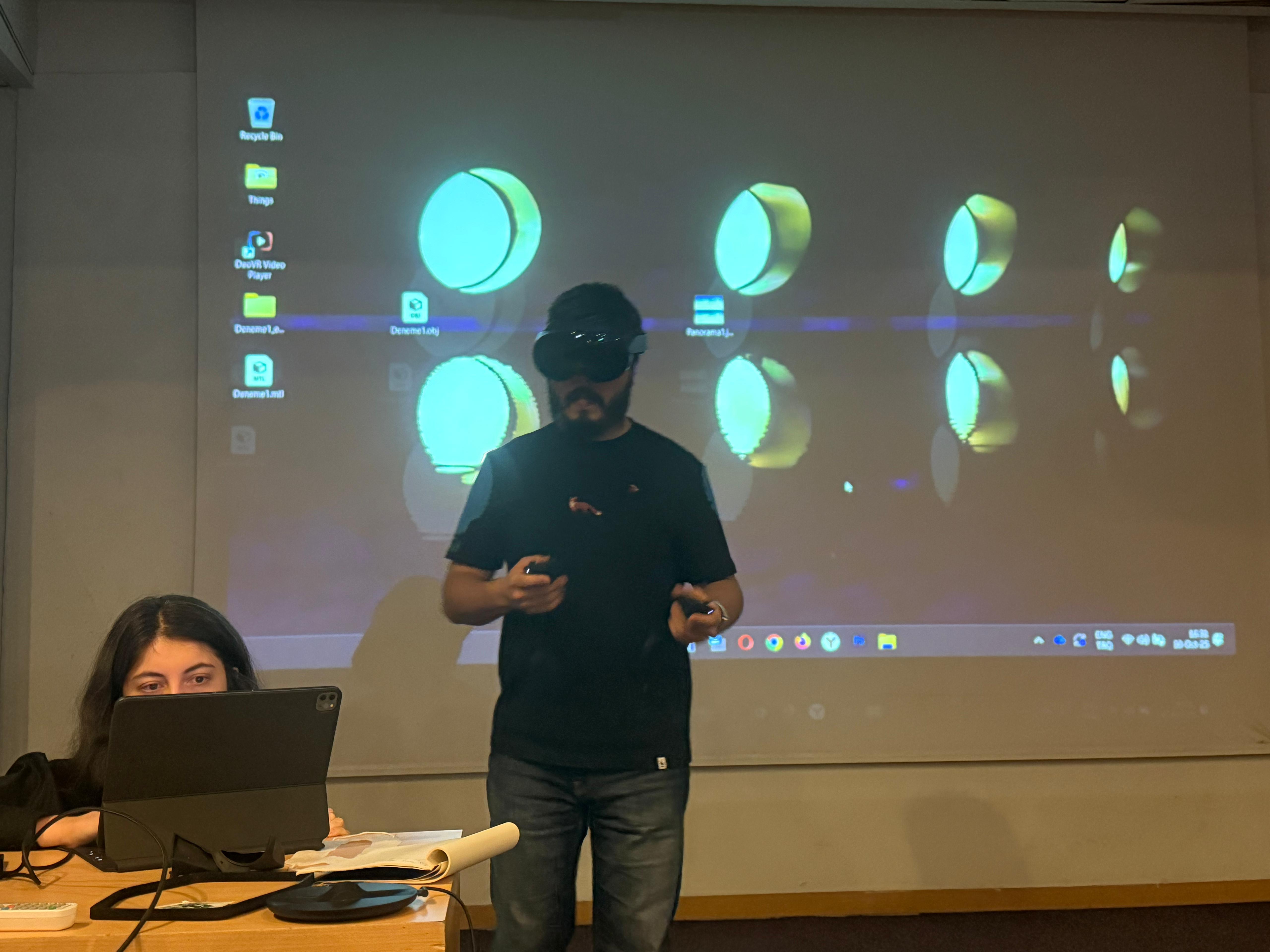 The workshop titled “Mekan_Sanal_Imersif: Immersive Virtual Reality and Architecture” was successfully held on October 30 at Gazi University Faculty of Architecture. The STUDIO V[II] coordinators from Ankara Yıldırım Beyazıt University Department of Architecture, Assoc. Prof. Dr. Hatice Kalfaoğlu Hatipoğlu and Res. Asst. Büşra İnce, contributed to the organization as part of the workshop team.