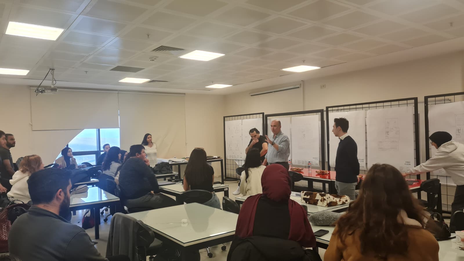Each workshop consisted of a lecture and a project-based feedback session, during which students presented their ongoing studio work and received expert critiques on system integration, performance considerations, and design decision-making. The sessions emphasized the importance of building services in architectural practice, highlighting topics such as thermal comfort, HVAC strategies, water and gas systems, electrical infrastructure, lighting, energy efficiency, and interdisciplinary coordination.