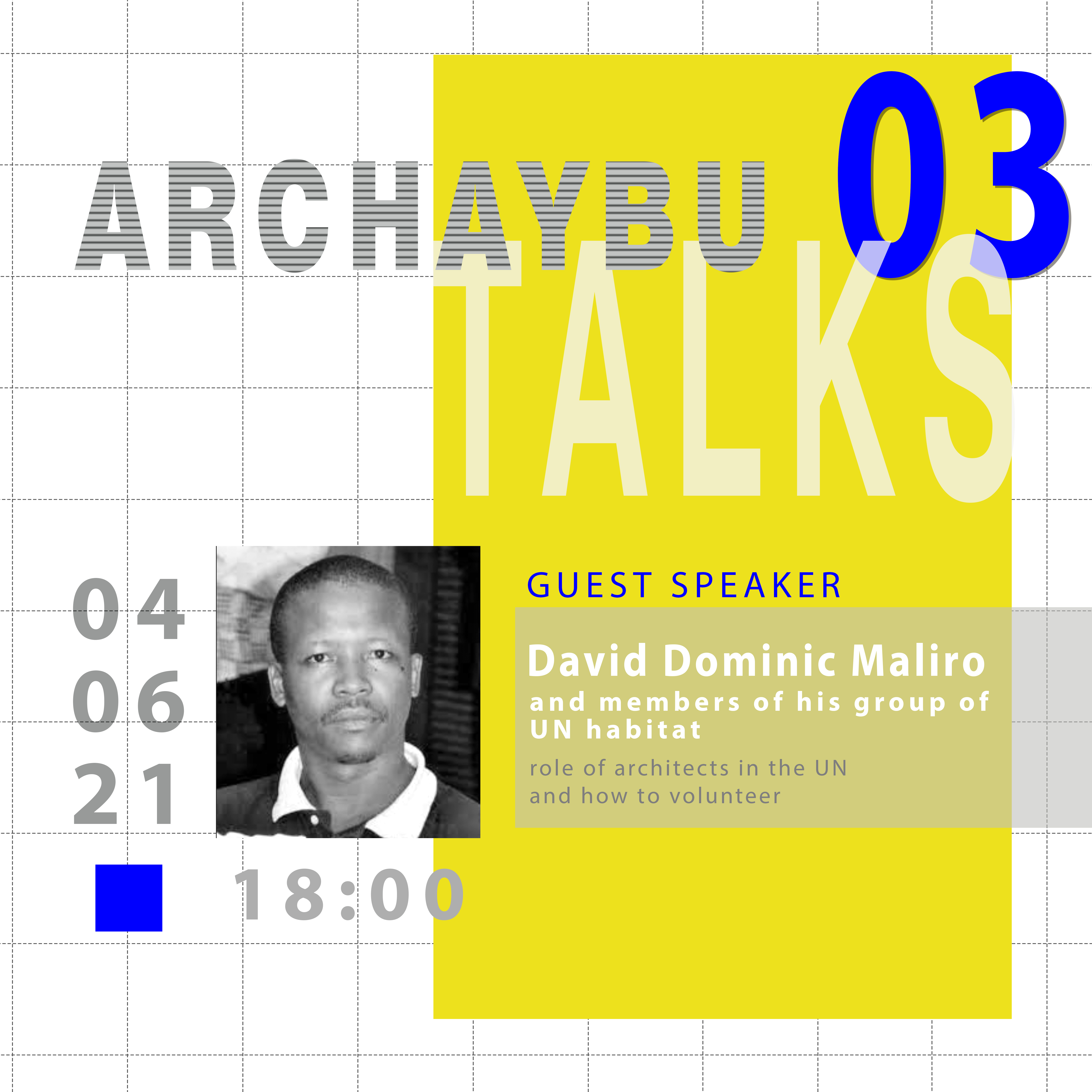 We invite you for our third talk with David Dominic Maliro, and members of his group of UN habitat on the 4th of June (Friday) at 18:00.