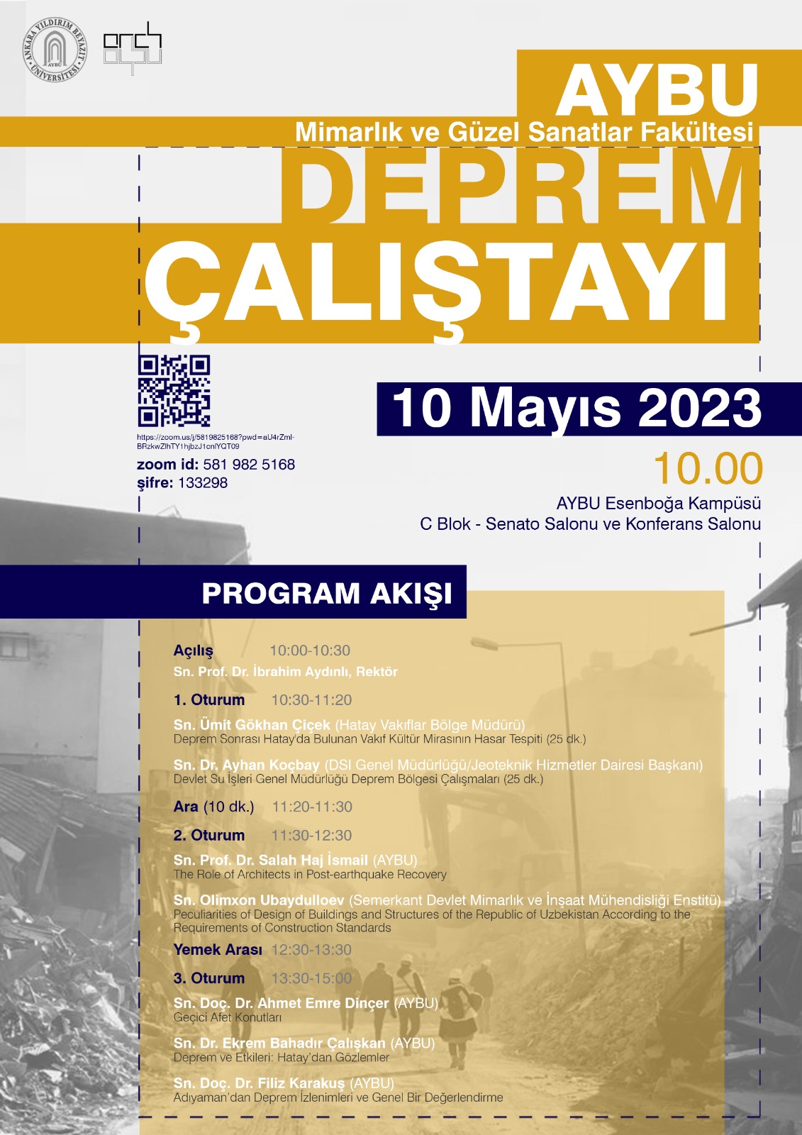 10 Mayıs 2023 saat 10 da Mimarlık ve Güzel Sanatlar Fakültesi tarafından Deprem Çalıştayı gerçekleştirilecektir.