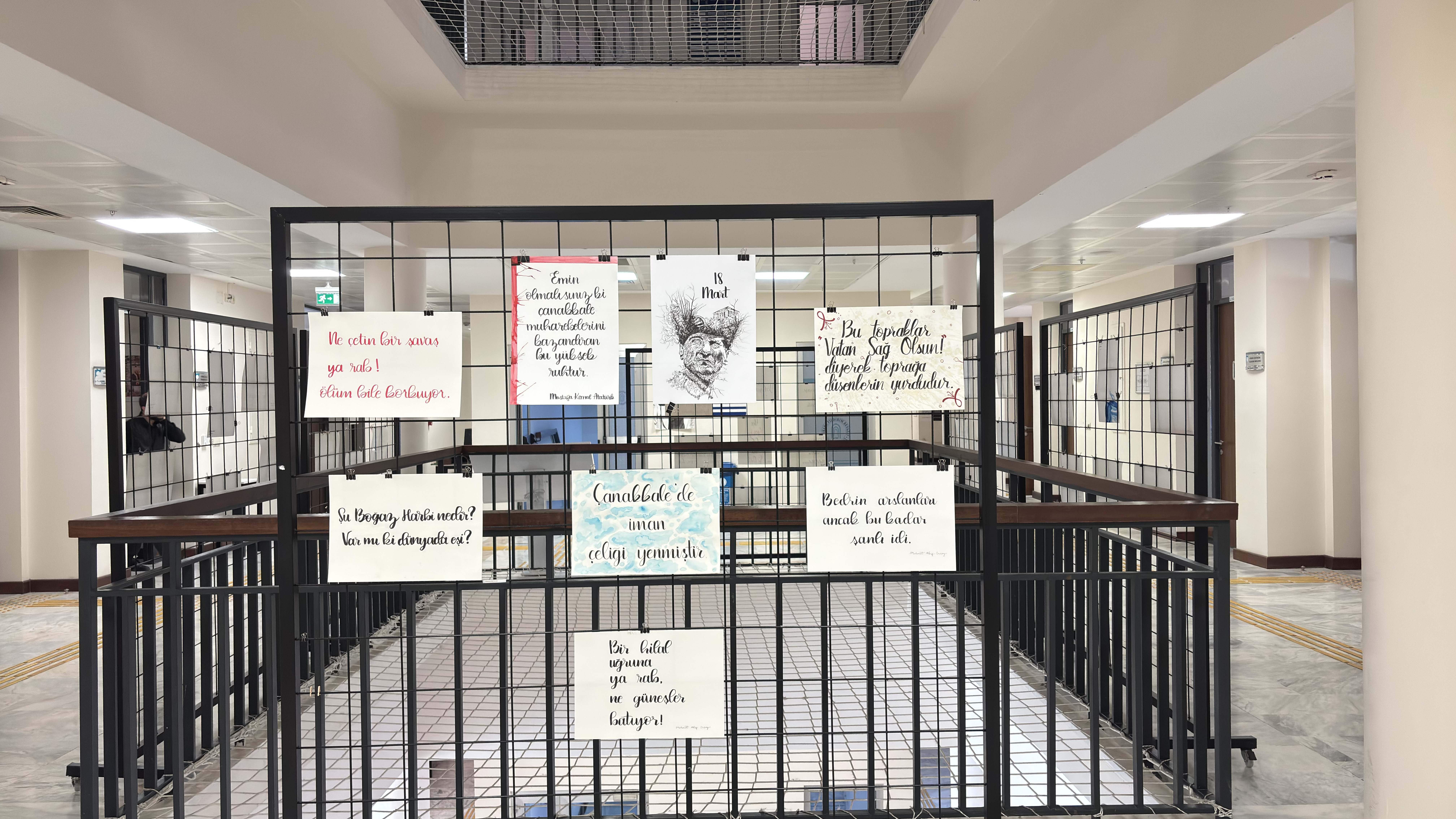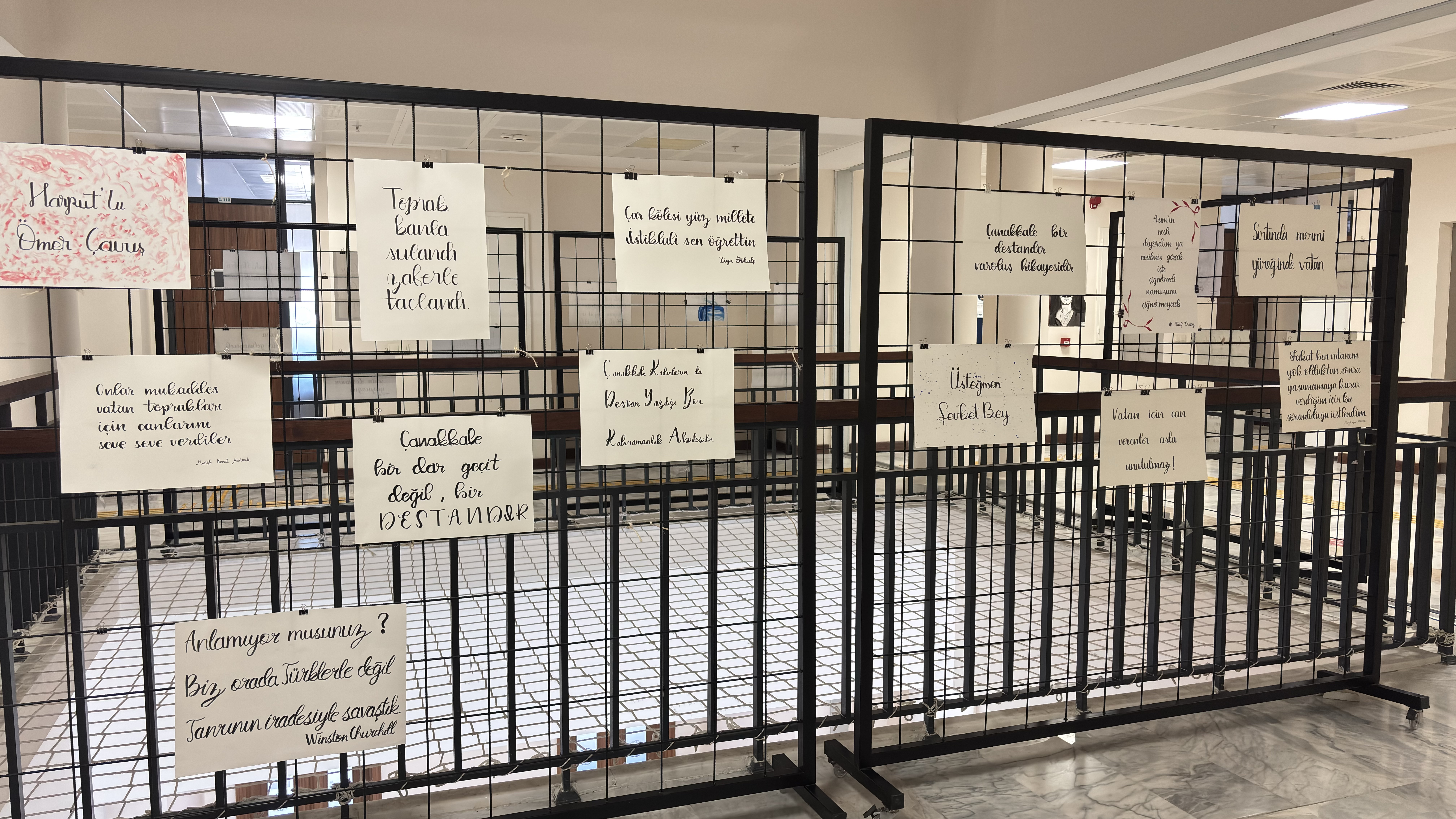 Between 20 February and 27 March 2025, our Faculty held a “Calligraphy Workshop” coordinated by Asst. Prof. Dr. Cengiz ŞAHİN and Res. Asst. Sare Şeyma DURAN, under the direction of Züleyha DİL, to commemorate the 110th anniversary of the 18 March Çanakkale Victory. Works produced by our students have been on display since 15 April 2025 and can be viewed until 2 May 2025. The exhibition was officially opened by Vice Rectors Prof. Dr. Mustafa ORÇAN and Prof. Dr. Abdullah YILDIZ, Dean Prof. Dr. İhsan TOKTAŞ, and Assoc. Prof. Dr. Abel Udo UDOH