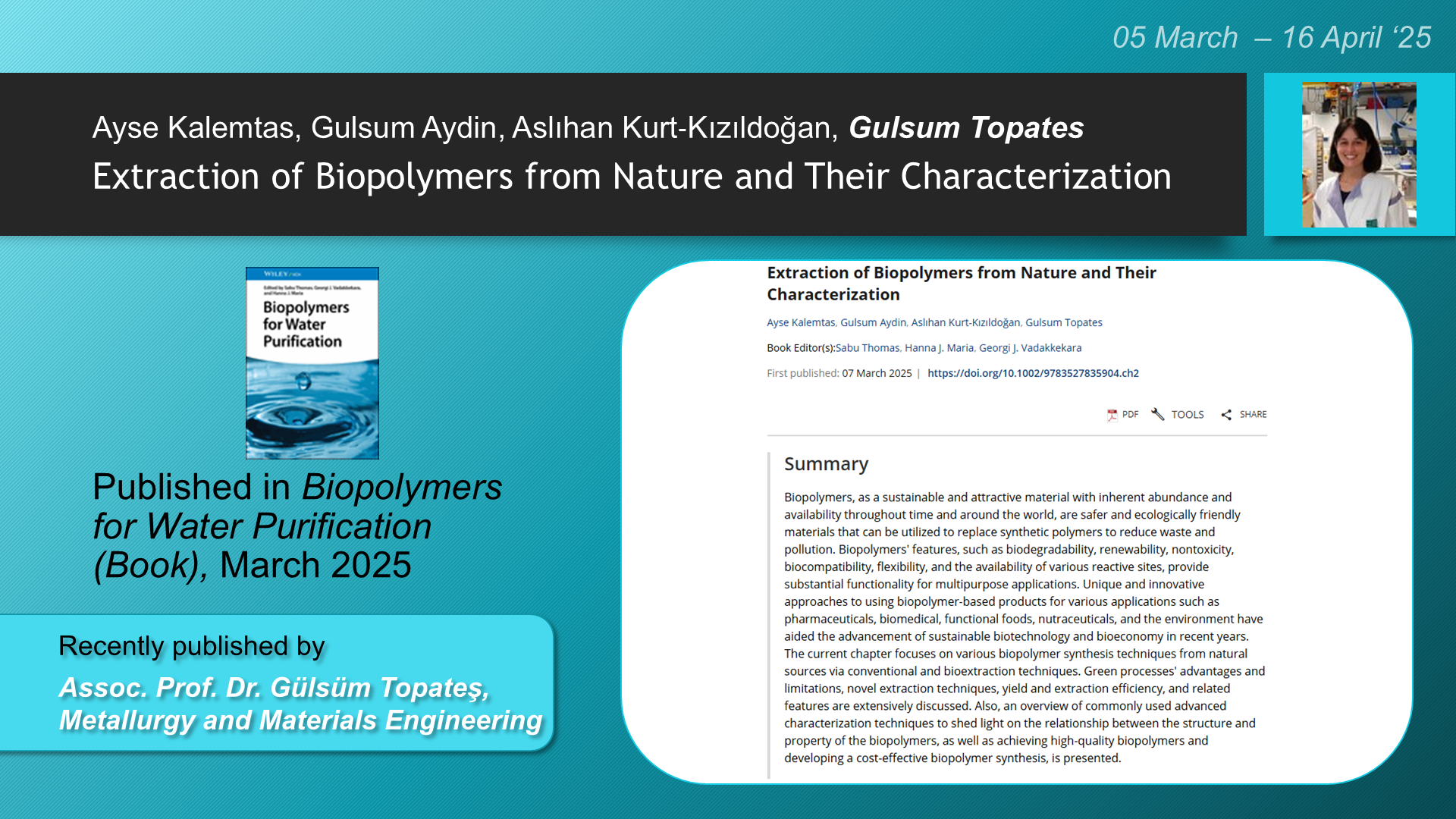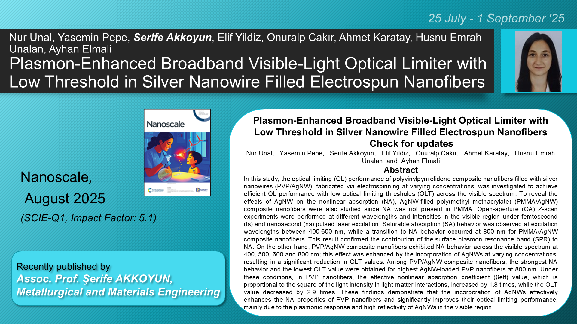 The International Journal of Advanced Manufacturing Technology, Sayfalar 1-27 A Novel Hybrid Nanocomposite of Curcumin, Silver, and Polyaniline in a PMAA–EGDMA Network for Enhanced Electrochemical and Antibacterial Performance Ehsan Sanattalab and Nimet Yıldırım‐Tirgil and Elif T Aksun‐Tümerkan