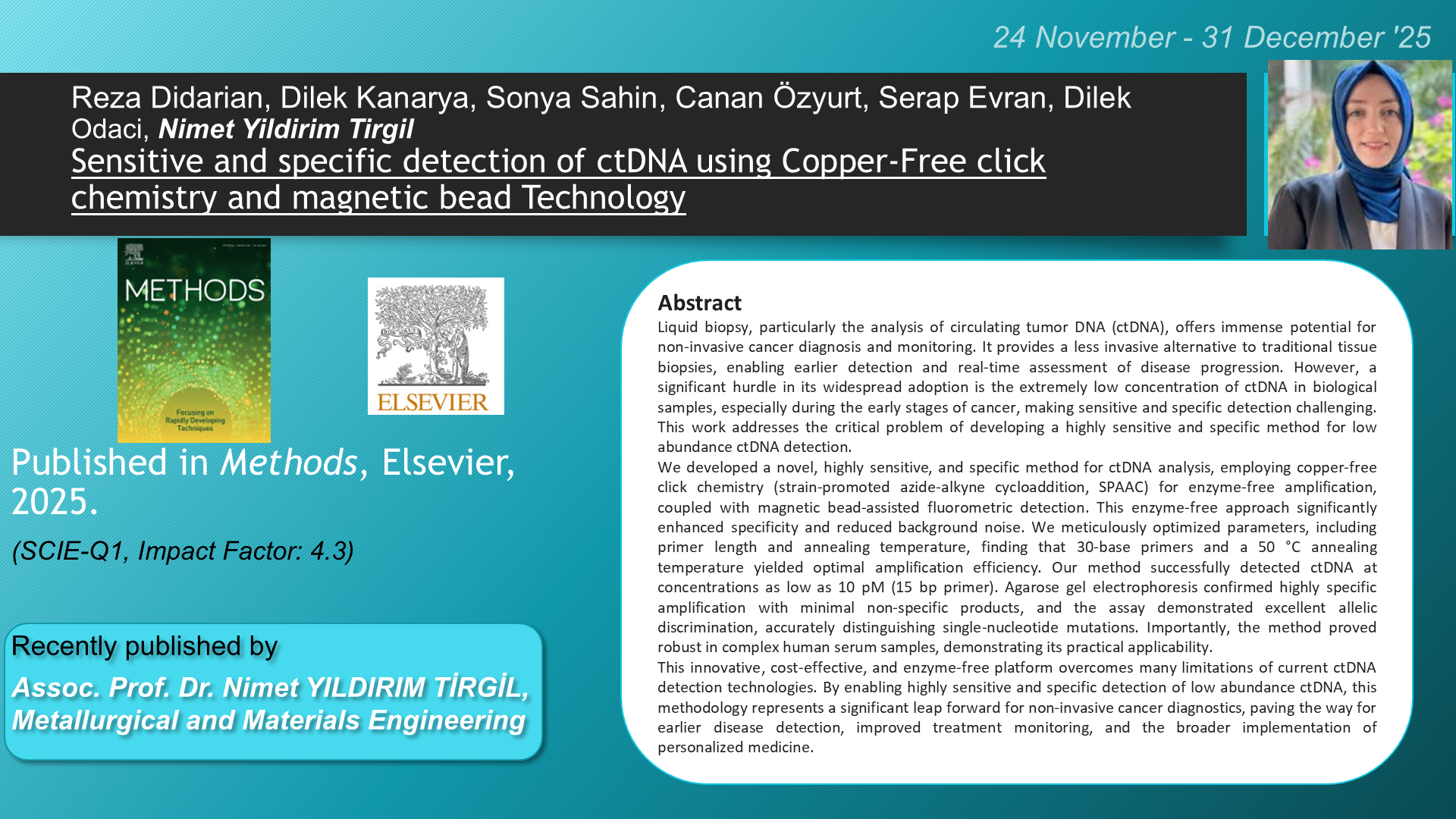 Journal of Materials Science, Sayfalar 1-13 Sensitive and specific detection of ctDNA using Copper-Free click chemistry and magnetic bead Technology Reza Didarian and Dilek Kanarya and Sonya Sahin and Canan Özyurt and Serap Evran and Dilek Odaci and Nimet Yildirim-Tirgil