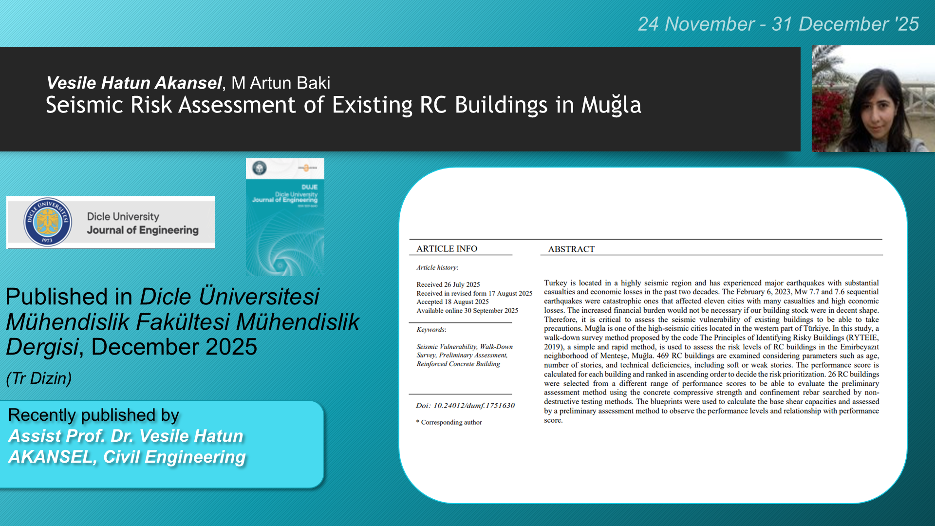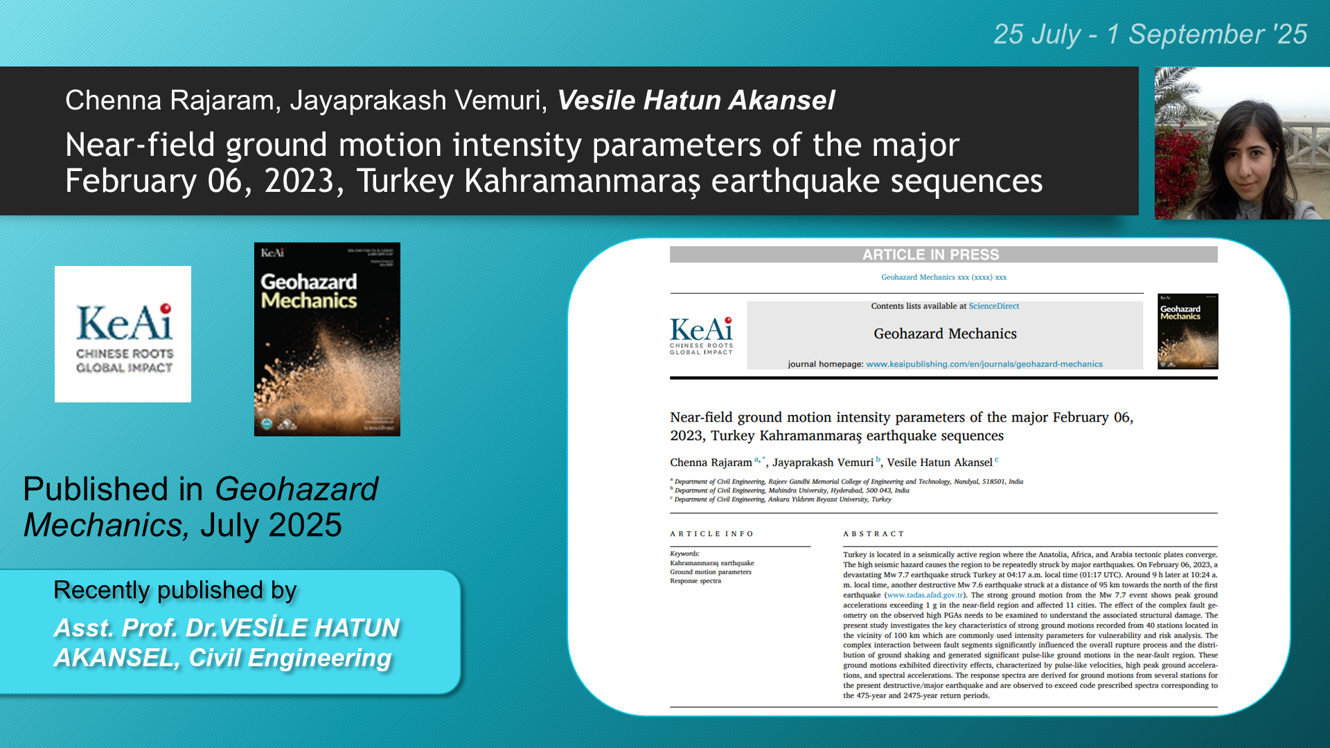 arXiv preprint arXiv:2510.21063 Artificial Neural Network-based Site Amplification Models for Central and Eastern North America Okan İLHAN and Youssef Hashash and Ellen Rathje and Jonathan Stewart and Aspasia Nikolaou and Kenneth Campbell Baseflow index estimation using digital and minima methods in the Büyük Menderes Basin Merve Nur Güngör and Arzu Ozkaya