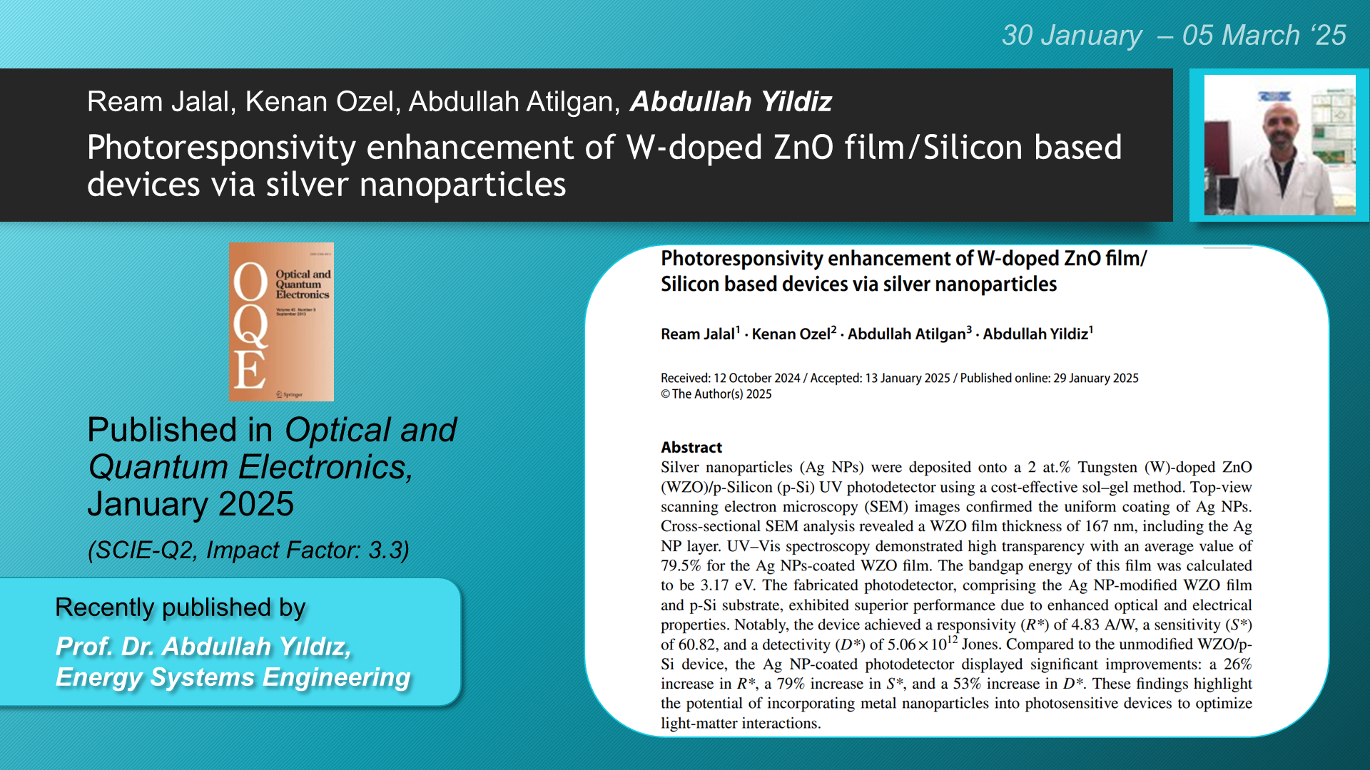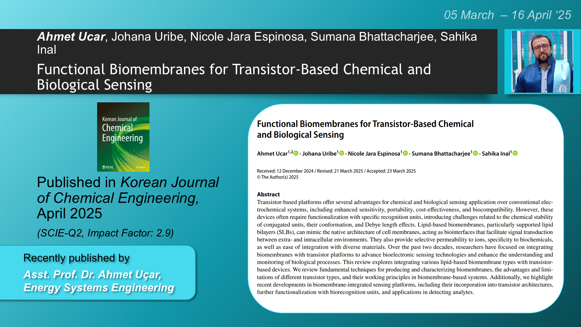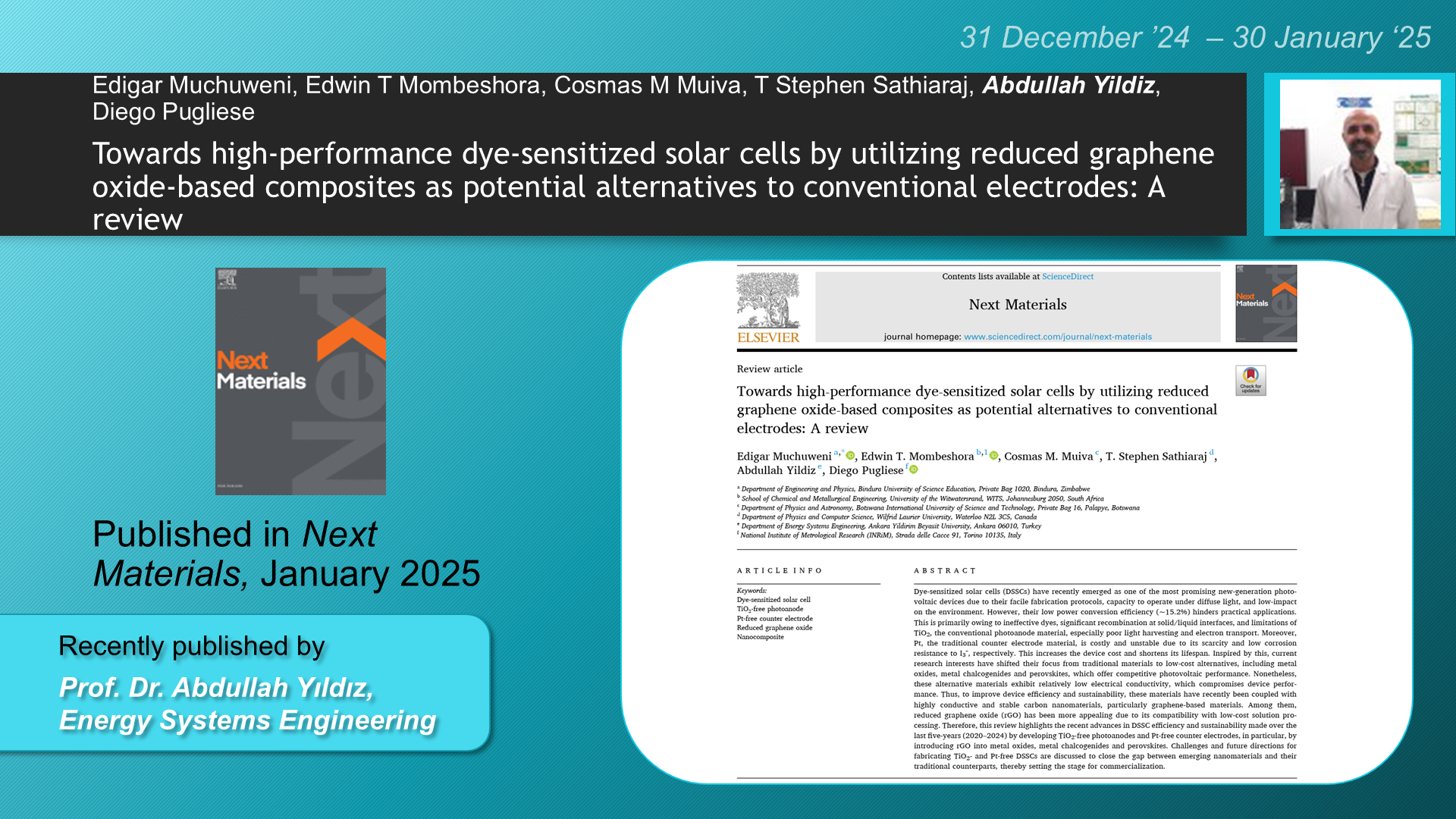 International Journal of Hydrogen Energy Towards high-performance dye-sensitized solar cells by utilizing reduced graphene oxide-based composites as potential alternatives to conventional electrodes: A review Edigar Muchuweni and Edwin T Mombeshora and Cosmas M Muiva and T Stephen Sathiaraj and Abdullah Yildiz and Diego Pugliese Development of a Polypyrrole–Chitosan Electrospun Nanofiber-Based Enzymatic Biosensor for Sensitive and Rapid Detection of Acetylcholine Nimet Yildirim-Tirgil and Serife Akkoyun and Hakan Umut Atan and Bedirhan Bozkurt