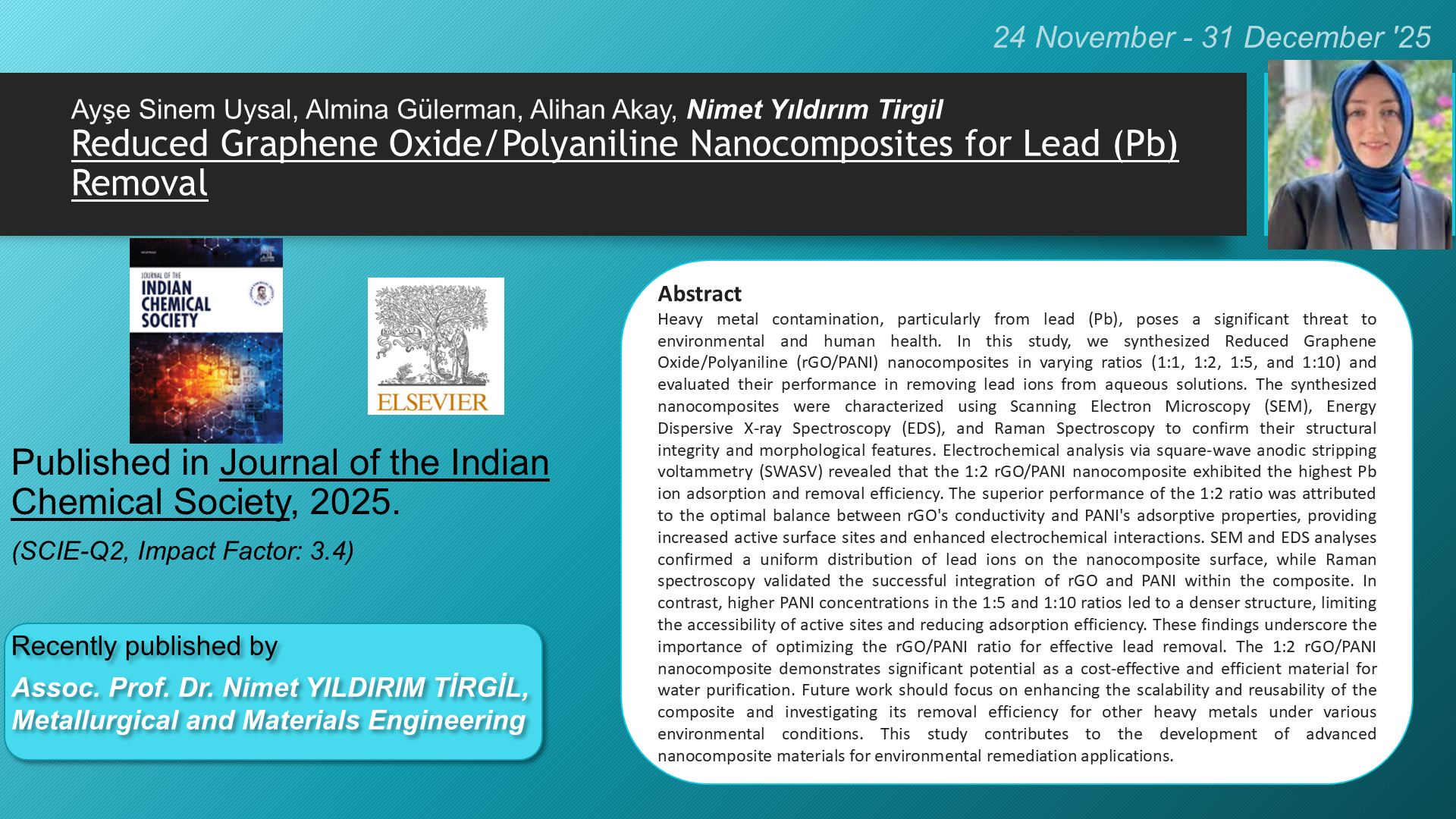Methods Reduced Graphene Oxide/Polyaniline Nanocomposites for Lead (Pb) Removal Ayşe Sinem Uysal and Almina Gülerman and Alihan Akay and Nimet Yıldırım-Tirgil