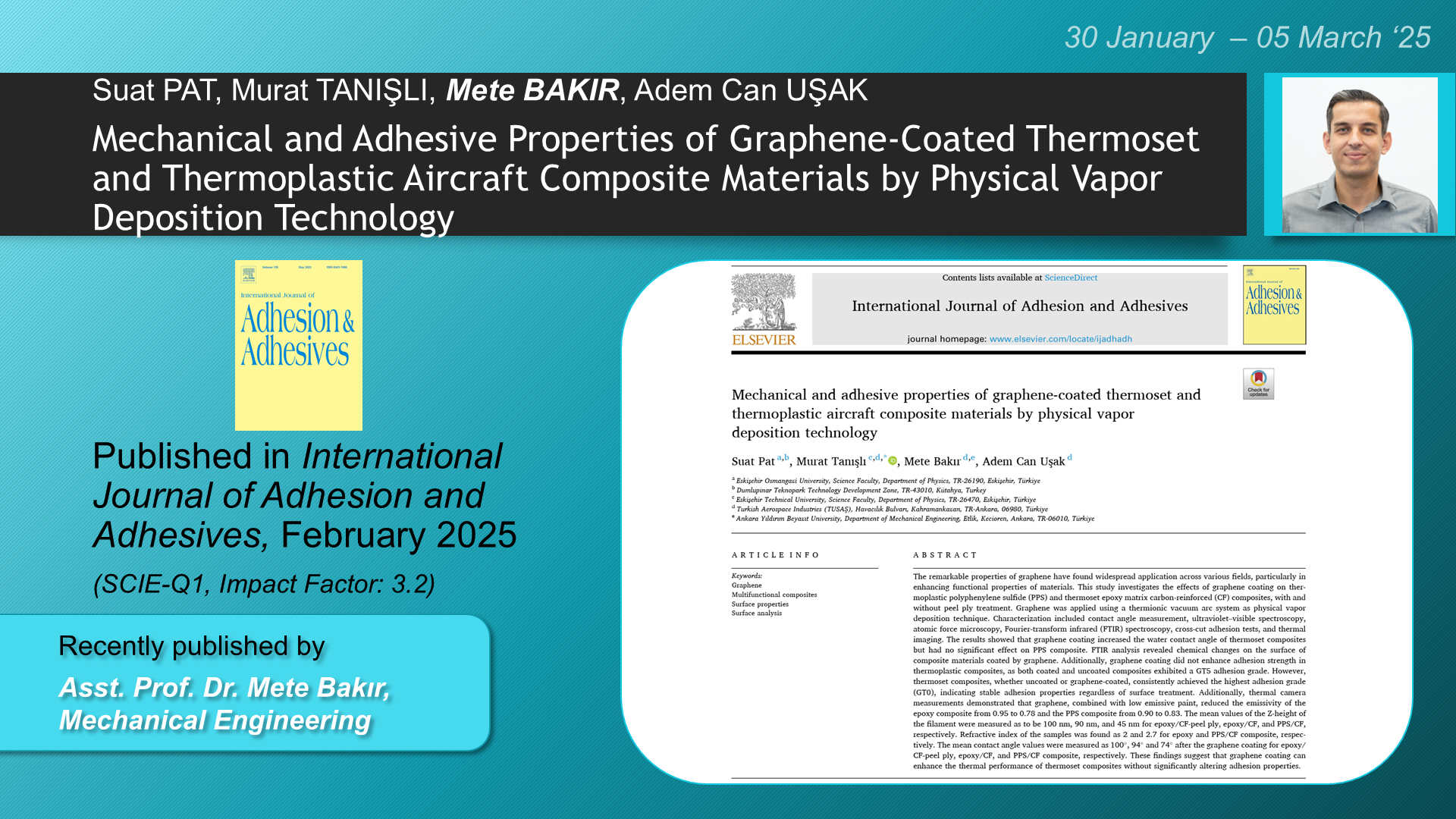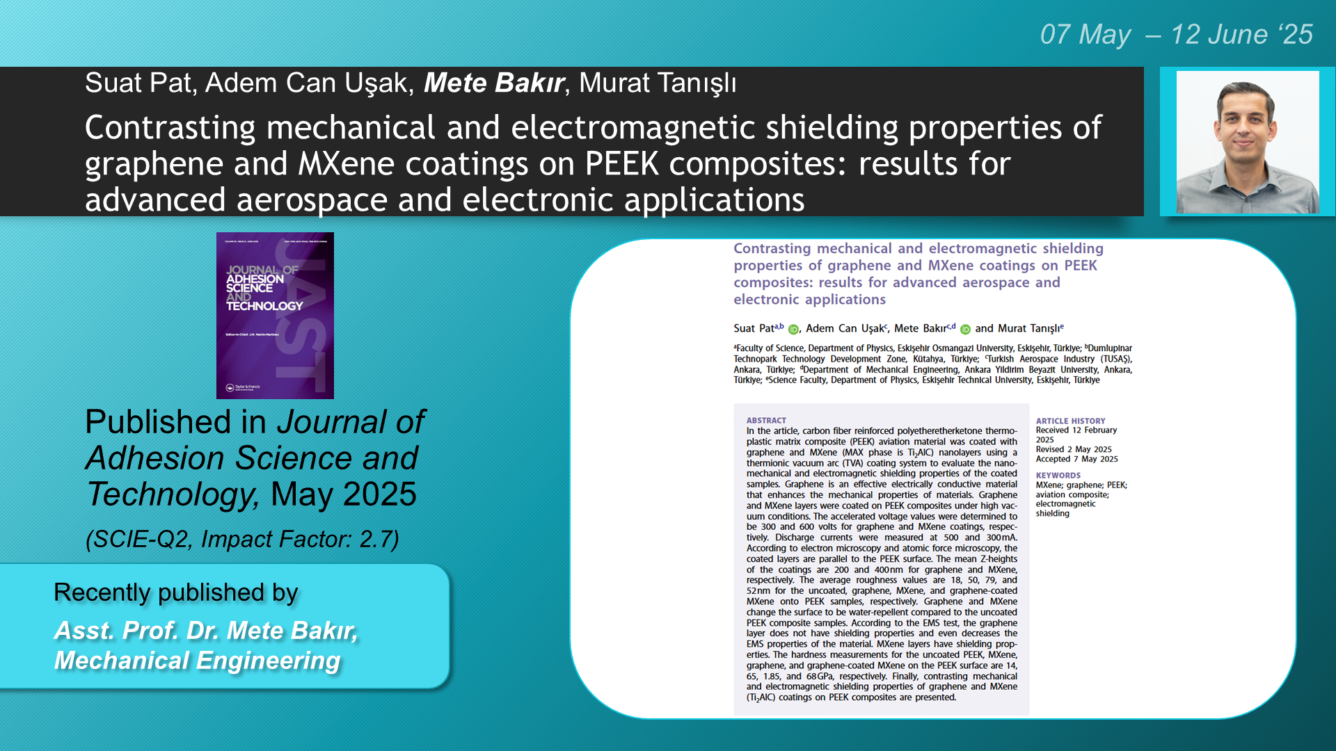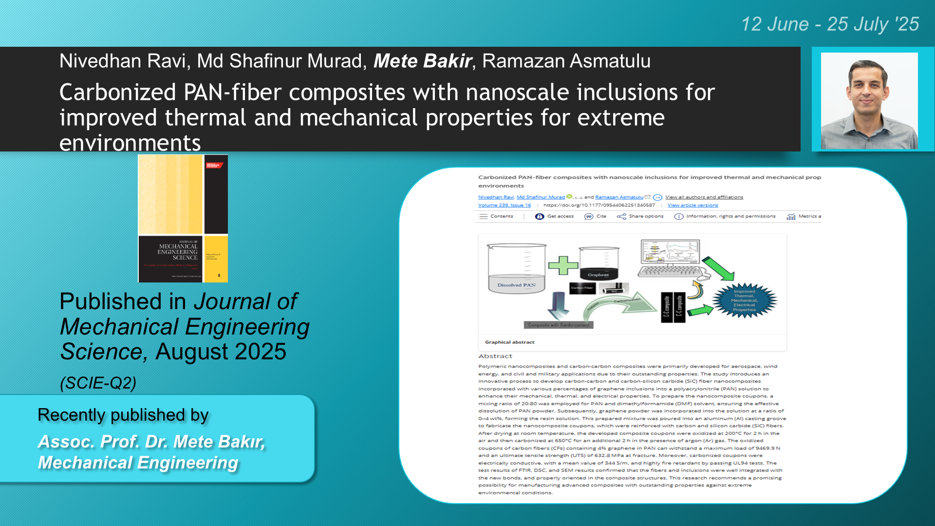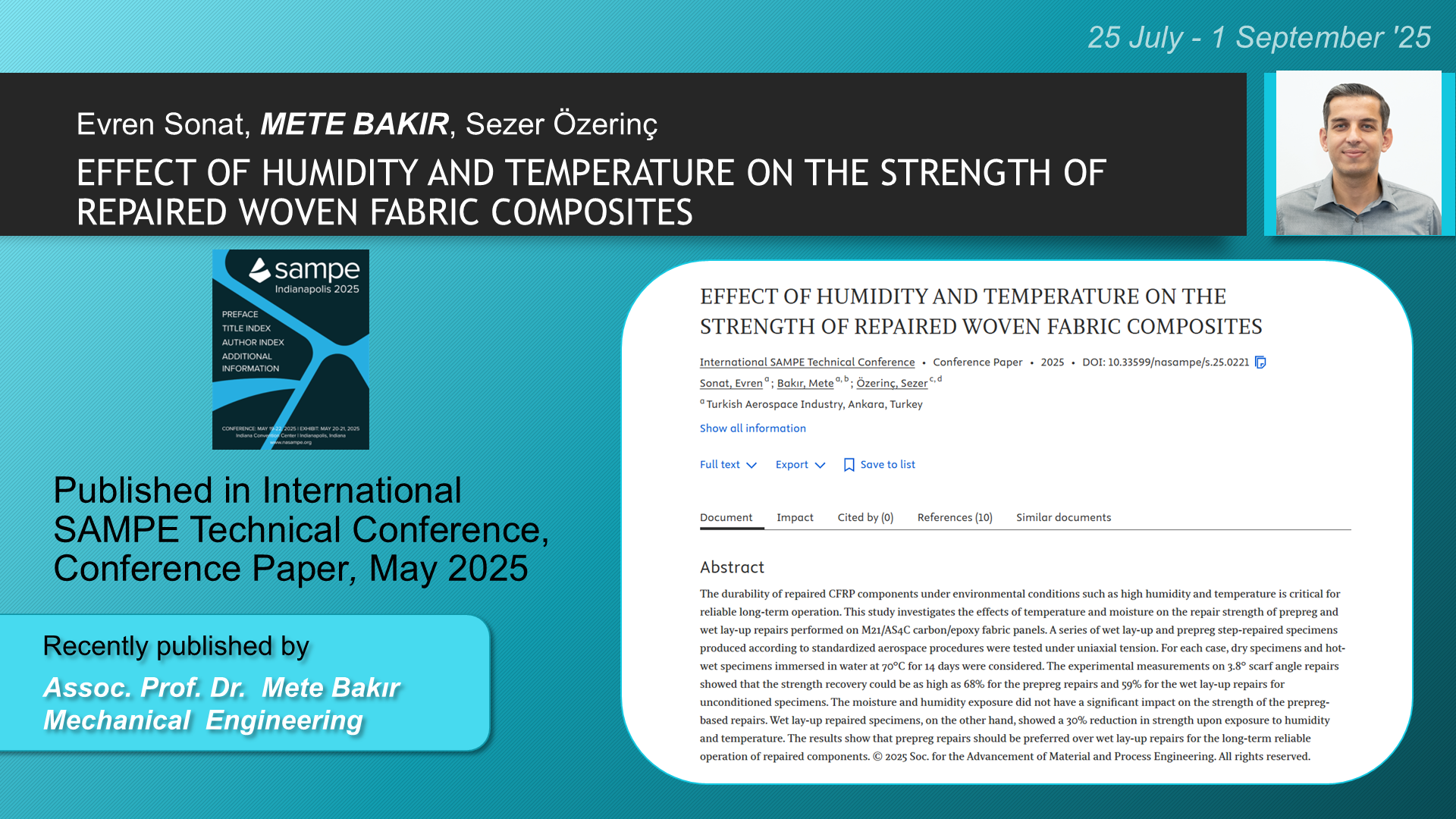 Available at SSRN 5317344 Investigating corrosion properties of aluminum alloys in various saltwater solutions via electrochemical analysis Md Shafinur Murad and Chiranjeet Hira and Abdulhammed K Hamzat and Ersin Bahceci and Eylem Asmatulu and Mete Bakir and Ramazan Asmatulu Investigating mechanical behaviours of fire-retardant fiber composites in aggressive aviation fluids Abdulhammed K Hamzat and Md Shafinur Murad and Eylem Asmatulu and Ersin Bahceci and Mete Bakir and Ramazan Asmatulu Investigation of optical and mechanical properties of gold-coated polycarbonate and cast acrylic transparent composites for aerospace applications Enes Makaraci and Farzana Yeasmin and Purva Todmal and Ali Gungor and Eylem Asmatulu and Halil Burak Kaybal and Ersin Bahceci and Mete Bakir and Ramazan Asmatulu Bayesian inference based high cycle fatigue modeling of forged 7050-T7452 aluminum Alloy: Effects of surface treatments and defects Halil İbrahim Filiz and Çağlayan Aras and Mete Bakır and Hakan Ateş