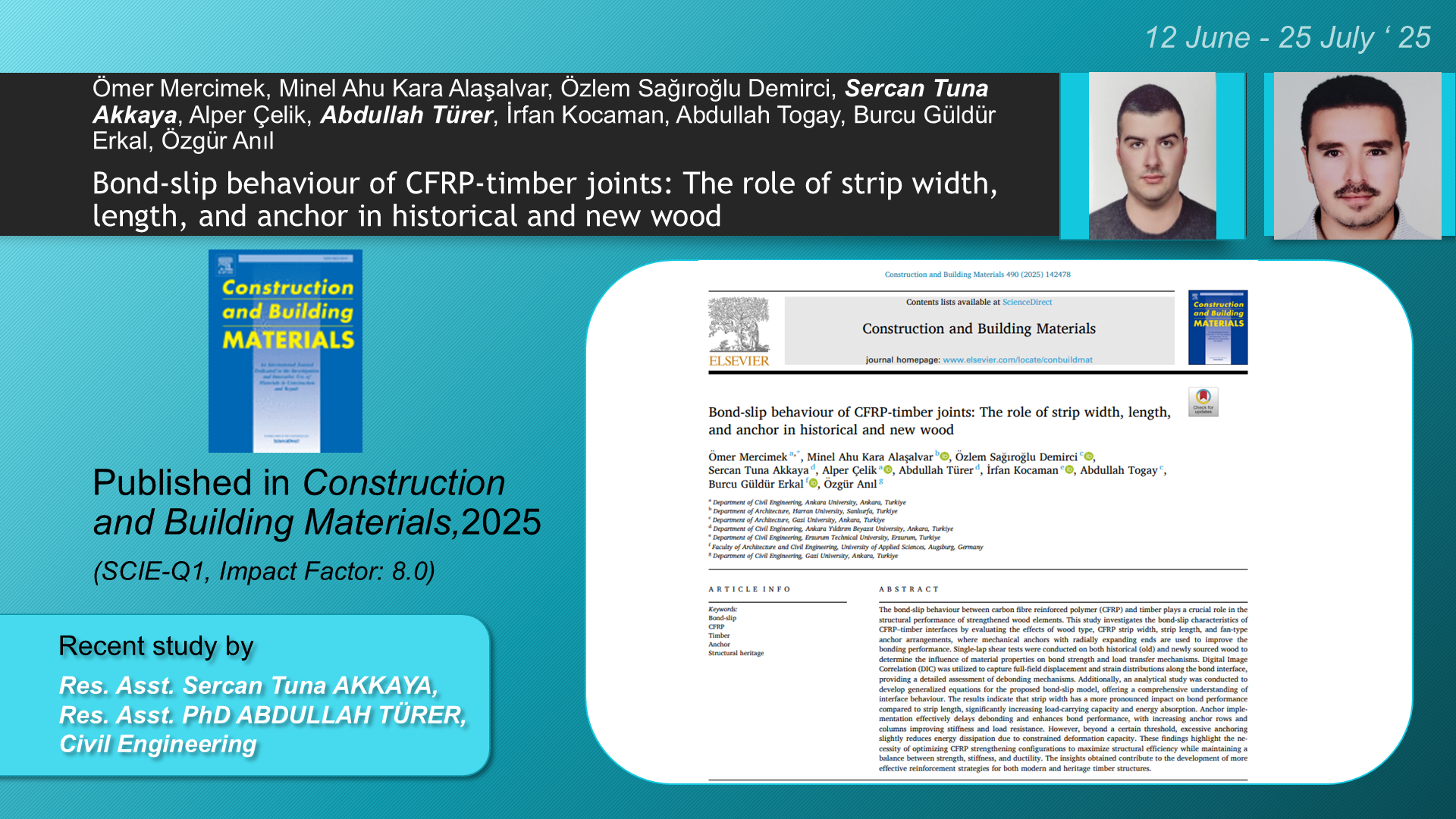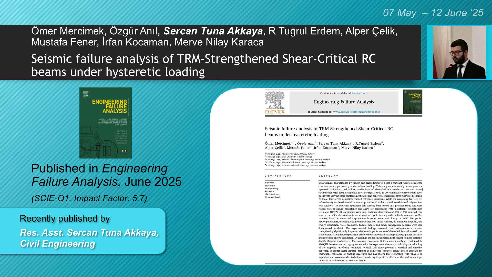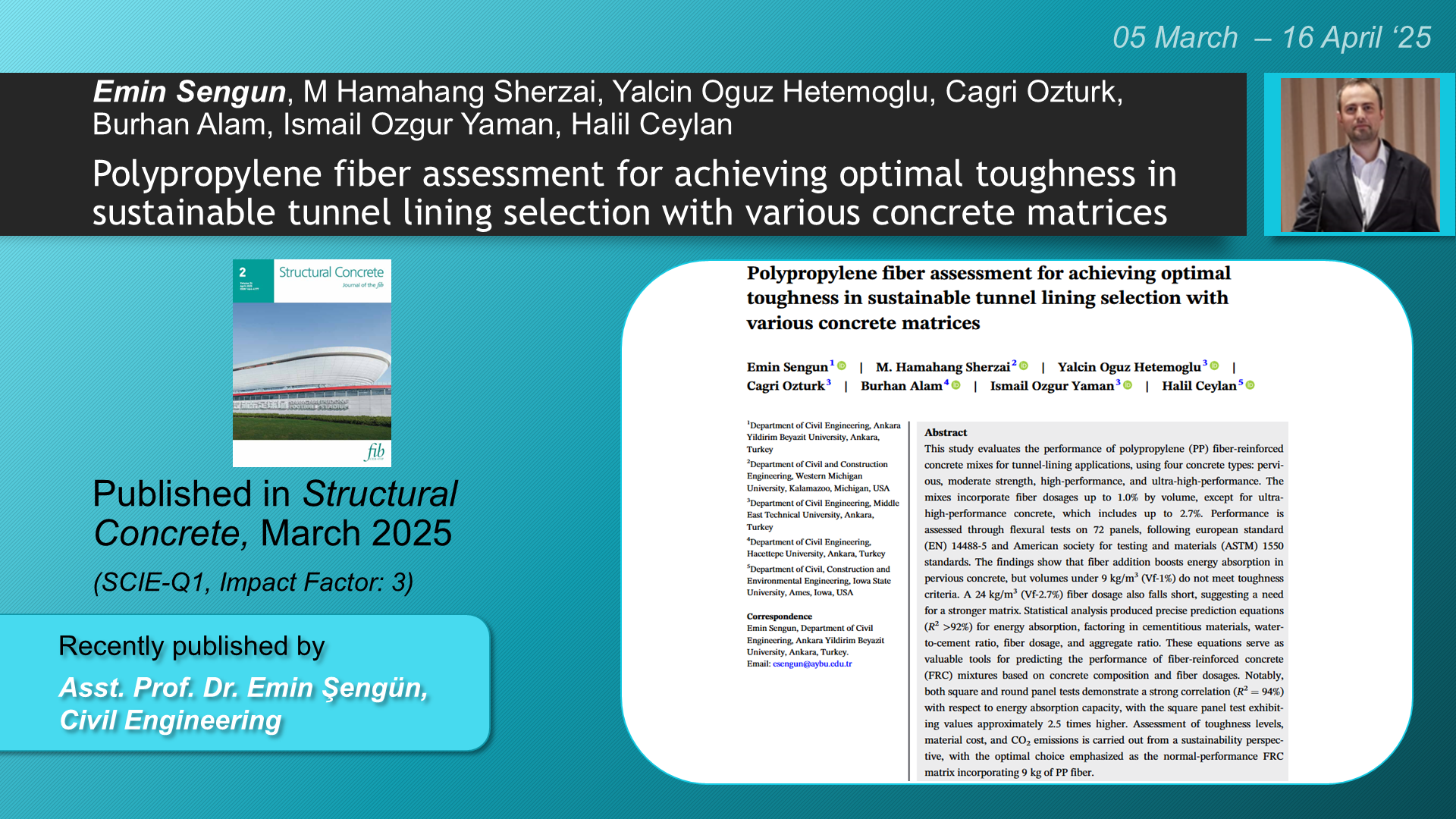 Construction and Building Materials, Cilt 458, Sayfalar 139595 Innovative solutions on ductility and bearing capacity: Strengthening flexural performance of reinforced concrete beams with recycled face mask fibers Anil Ozdemir and Baran Bozyigit and Rüya Kılıç Demircan and Ömer Mercimek and Damla Nur Çelik and Sercan Tuna Akkaya and Gökhan Kaplan