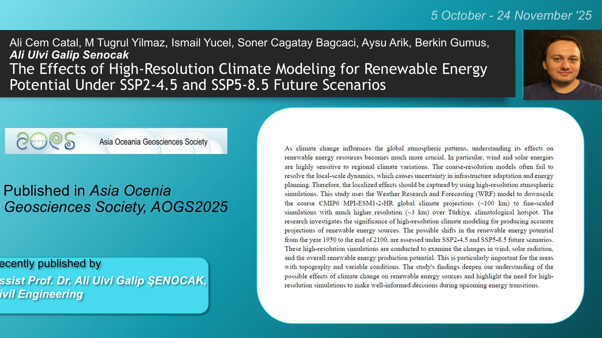 Asia Ocenia Geosciences Society, AOGS2025 The Effects of High-Resolution Climate Modeling for Renewable Energy Potential Under SSP2-4.5 and SSP5-8.5 Future Scenarios Ali Cem Catal and M Tugrul Yilmaz and Ismail Yucel and Soner Cagatay Bagcaci and Aysu Arik and Berkin Gumus and Ali Ulvi Galip Senocak