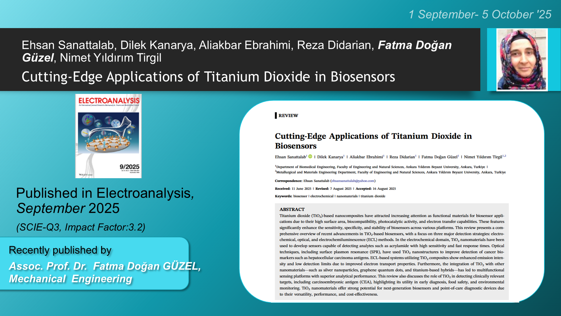 International Journal of Energy Studies, Cilt 10, Sayı 3, Sayfalar 699-710 Cutting‐Edge Applications of Titanium Dioxide in Biosensors Ehsan Sanattalab and Dilek Kanarya and Aliakbar Ebrahimi and Reza Didarian and Fatma Doğan Güzel and Nimet Yıldırım Tirgil Recent advances of microfluidic organ-on-a-chip monitoring strategies Aliakbar Ebrahimi and Zineb Benzait and Ozlem Tomsuk and Ceren Ozel and Emre Tufekcioglu and Golara Ghorban Dordinejad and Reza Didarian and Hamed Ghorbanpoor and Fatma Doğan Güzel and Huseyin Avci Impacts of Aggressive Aviation Fluids on Physical and Chemical Properties of Aerospace-Grade Fiber Composites Abdulhammed K Hamzat and Fatih Altun and Farzana Yeasmin and Naime Unlu and Ersin Bahceci and Eylem Asmatulu and Mete Bakir and Ramazan Asmatulu