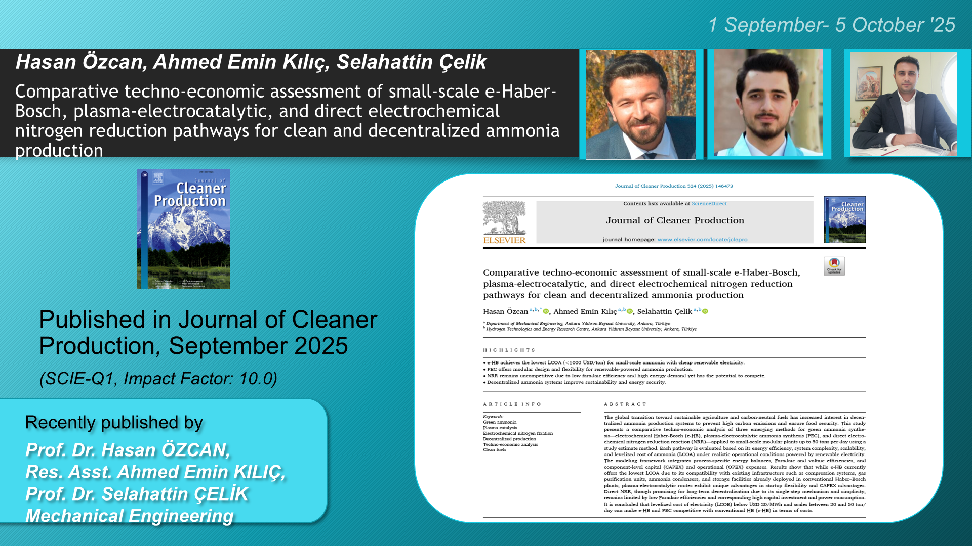 Gazi Üniversitesi Mühendislik Mimarlık Fakültesi Dergisi, Cilt 40, Sayı 3, Sayfalar 1857-1874 Comparative techno-economic assessment of small-scale e-Haber-Bosch, plasma-electrocatalytic, and direct electrochemical nitrogen reduction pathways for clean and decentralized ammonia production Hasan Özcan and Ahmed Emin Kılıç and Selahattin Çelik