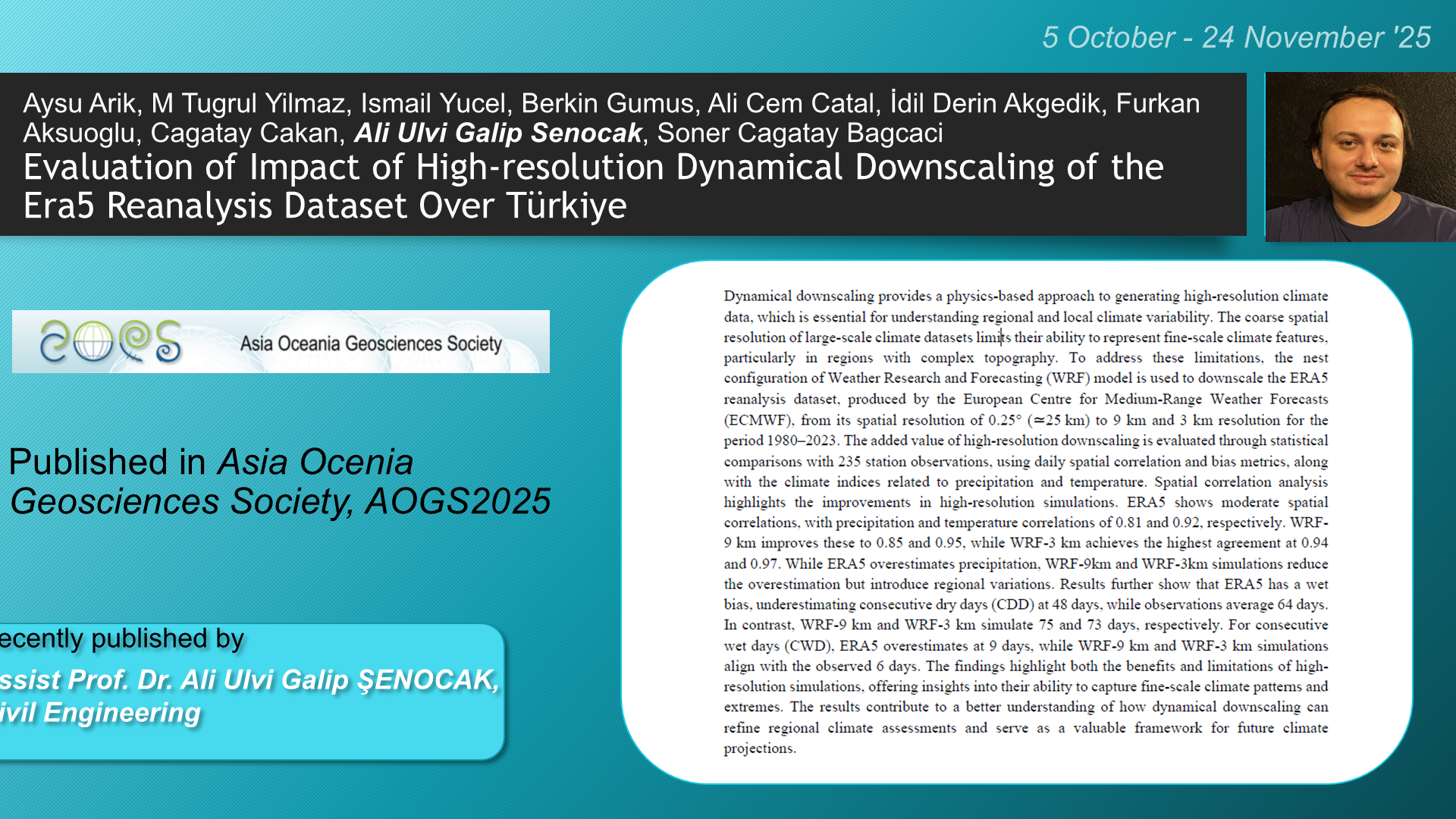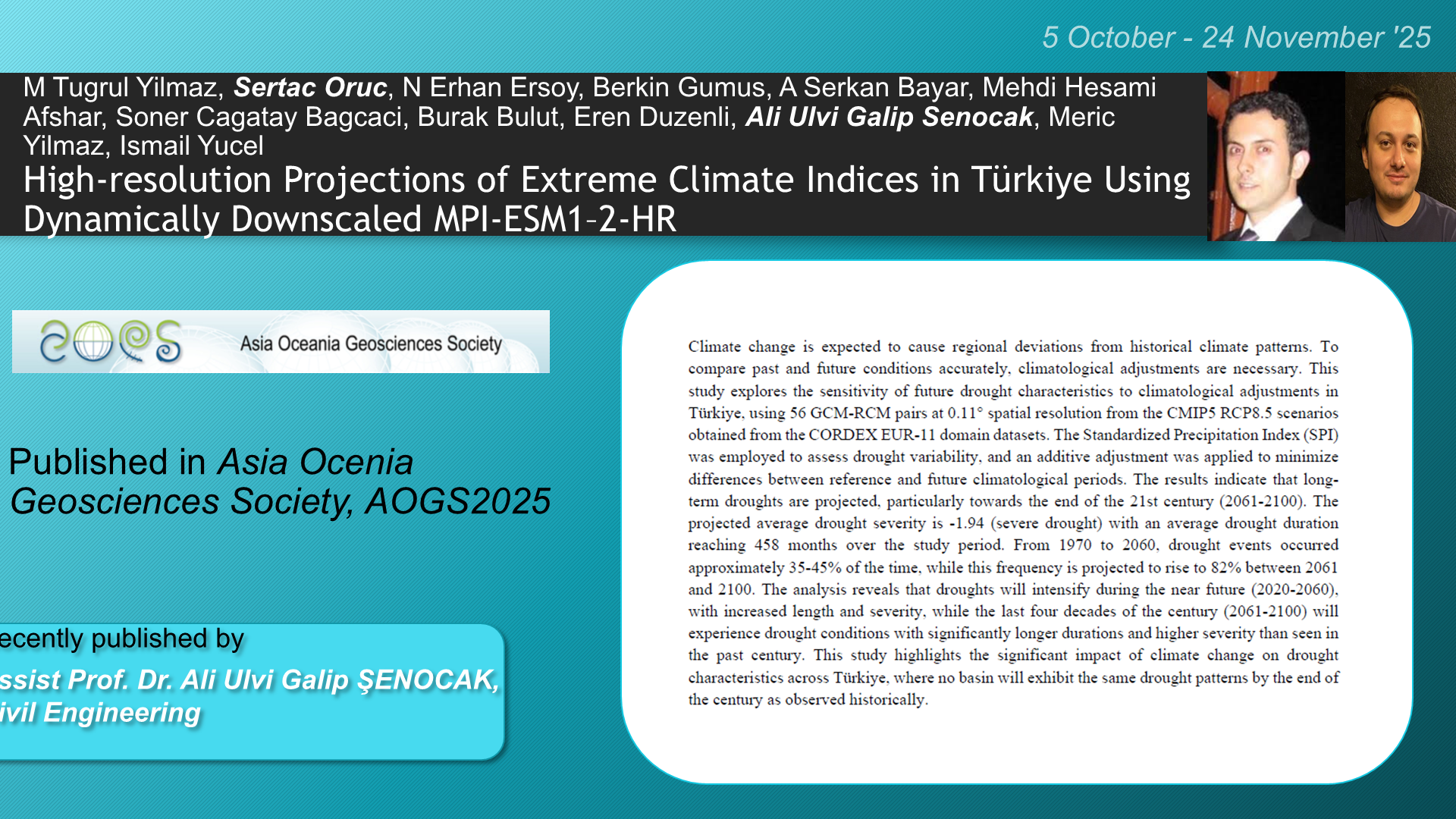 Asia Ocenia Geosciences Society, AOGS2025 High-resolution Projections of Extreme Climate Indices in Türkiye Using Dynamically Downscaled MPI-ESM1–2-HR Berkin Gumus and Ismail Yucel and M Tugrul Yilmaz and Aysu Arik and Ali Cem Catal and Ali Ulvi Galip Senocak and Soner Cagatay Bagcaci