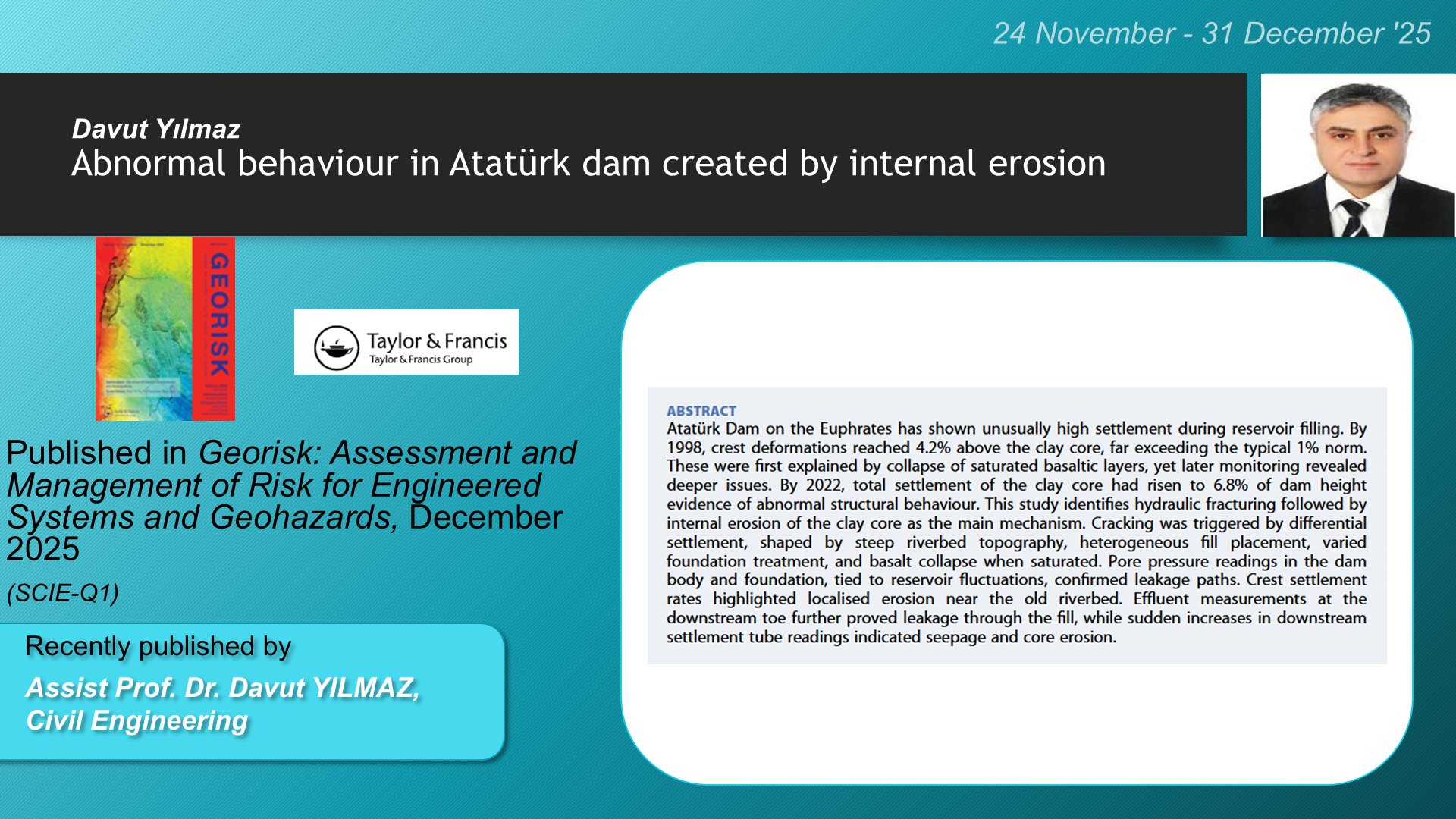 Journal of Building Engineering, Sayfalar 114880 Abnormal behaviour in Atatürk dam created by internal erosion Davut Yılmaz