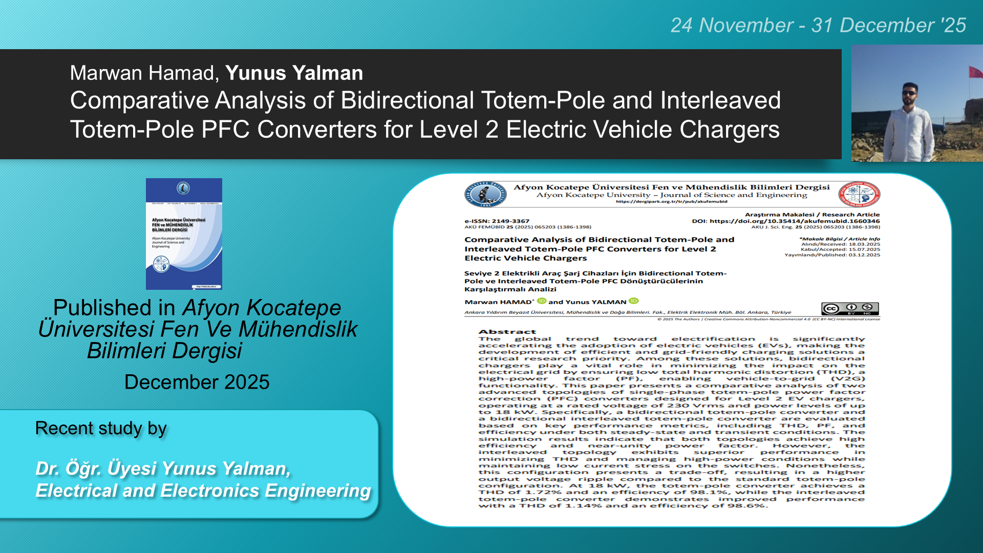 Arabian Journal for Science and Engineering, Sayfalar 1-18 Impacts of extreme ambient temperatures on electric vehicle charging demand: a case study in Qatar Irfan Alp Gurkaynak and I Safak Bayram and Sertac Bayhan and Usman Zafar Comparative Analysis of Bidirectional Totem-Pole and Interleaved Totem-Pole PFC Converters for Level 2 Electric Vehicle Chargers Marwan Hamad and Yunus Yalman