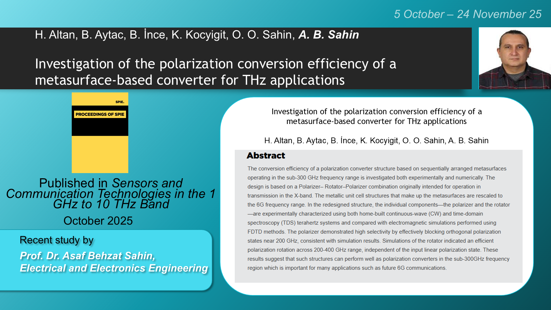Artificial Intelligence for Security and Defence Applications III, Cilt 13679, Sayfalar 221-227 Investigation of the polarization conversion efficiency of a metasurface-based converter for THz applications H Altan and B Aytac and B İnce and K Kocyigit and OO Sahin and AB Sahin