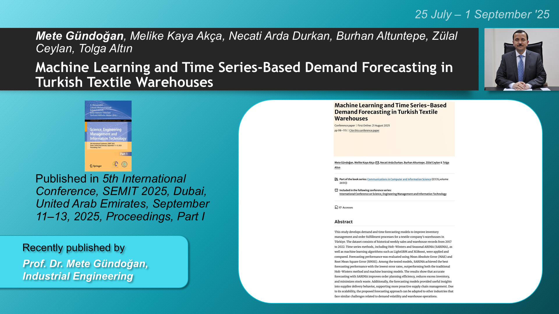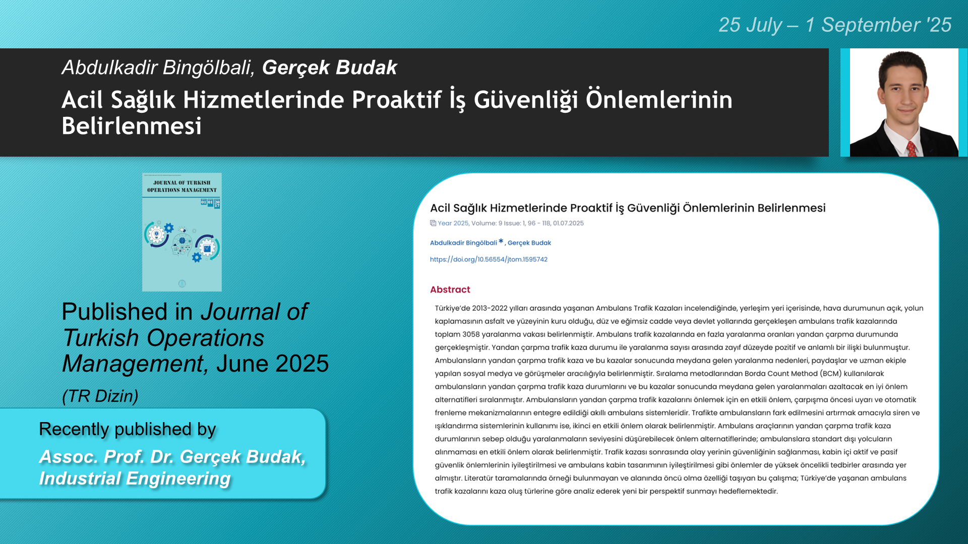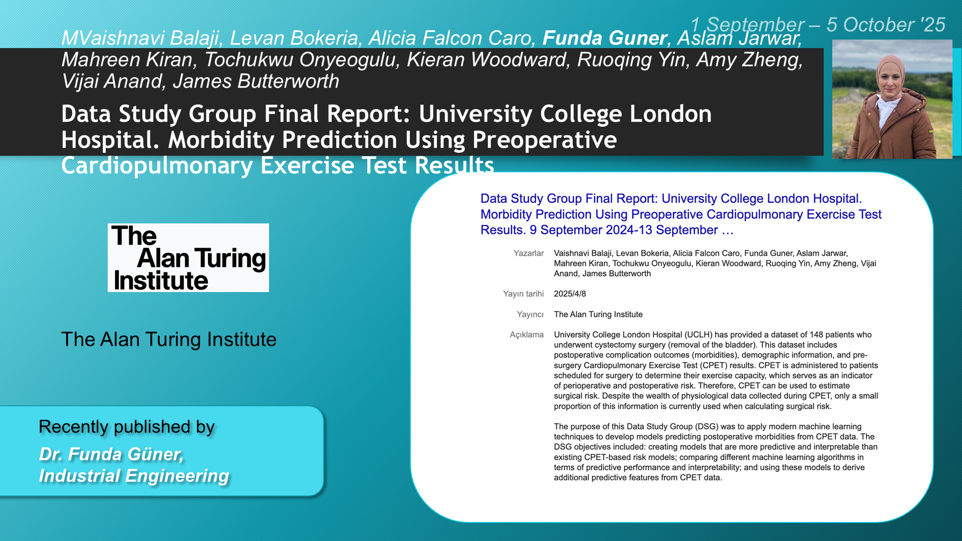 Engineering Science and Technology, an International Journal, Cilt 72, Sayfalar 102205 Data Study Group Final Report: University College London Hospital. Morbidity Prediction Using Preoperative Cardiopulmonary Exercise Test Results. 9 September 2024-13 September 2024. Vaishnavi Balaji and Levan Bokeria and Alicia Falcon Caro and Funda Guner and Aslam Jarwar and Mahreen Kiran and Tochukwu Onyeogulu and Kieran Woodward and Ruoqing Yin and Amy Zheng and Vijai Anand and James Butterworth A Constraint Programming Approach for Customer Order Scheduling Problem with Sequence Dependant Setup Times Funda Güner and John H. Drake