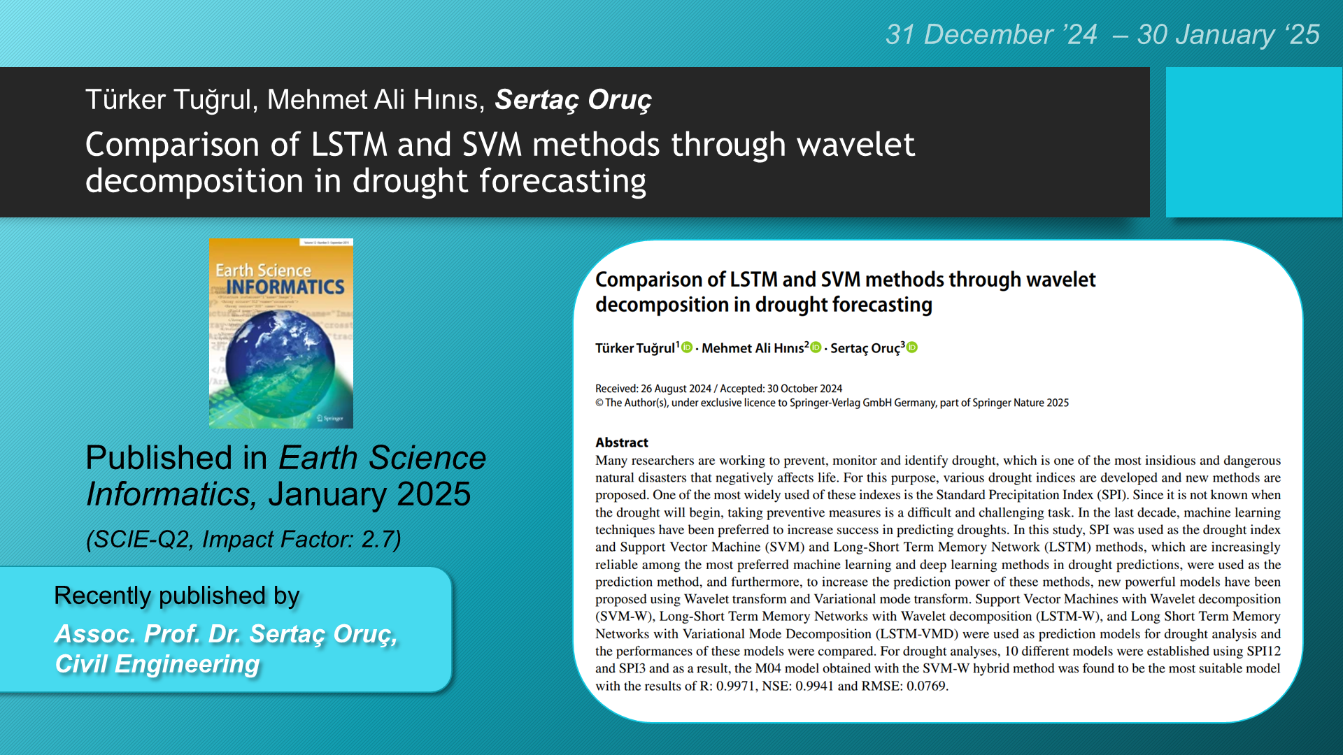 Structures, Cilt 72, Sayfalar 108231 Comparison of LSTM and SVM methods through wavelet decomposition in drought forecasting Türker Tuğrul and Mehmet Ali Hınıs and Sertaç Oruç