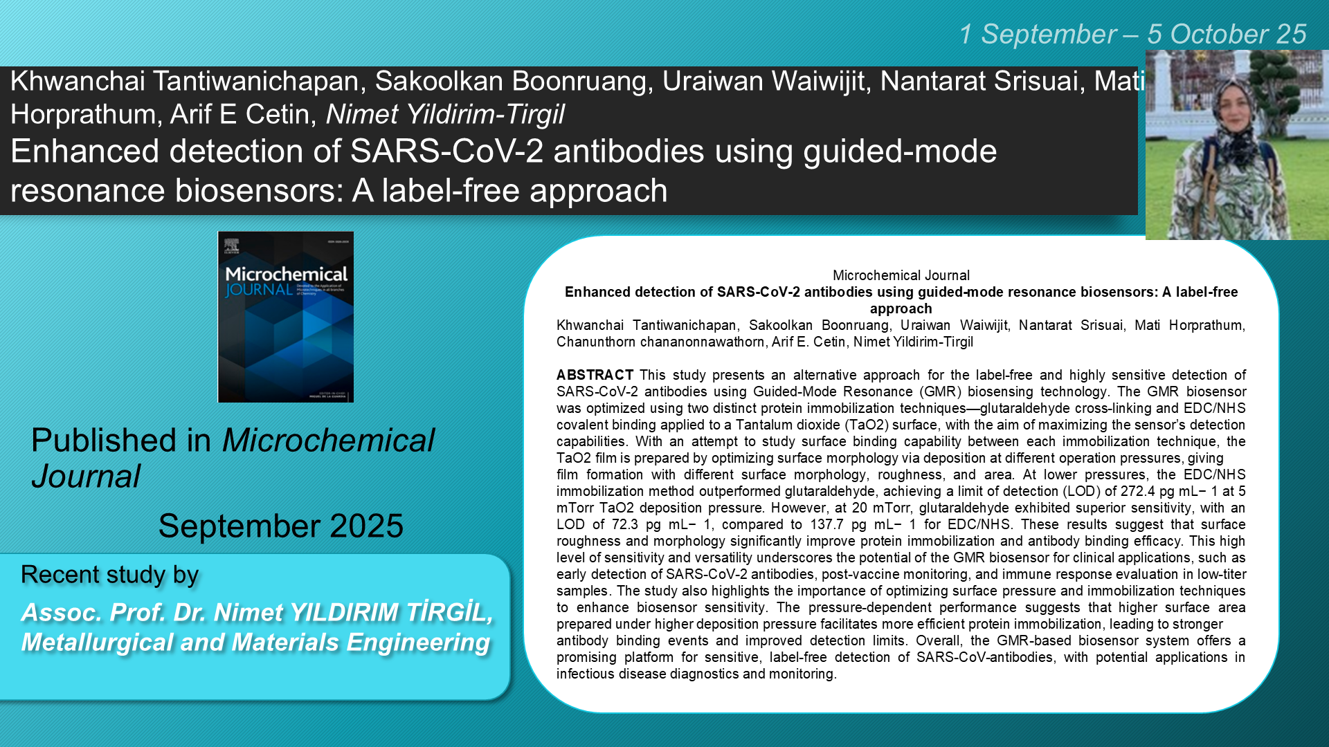 Journal of Computational Electronics, Cilt 24, Sayı 6, Sayfalar 181 Enhanced detection of SARS-CoV-2 antibodies using guided-mode resonance biosensors: A label-free approach Khwanchai Tantiwanichapan and Sakoolkan Boonruang and Uraiwan Waiwijit and Nantarat Srisuai and Mati Horprathum and Arif E Cetin and Nimet Yildirim-Tirgil