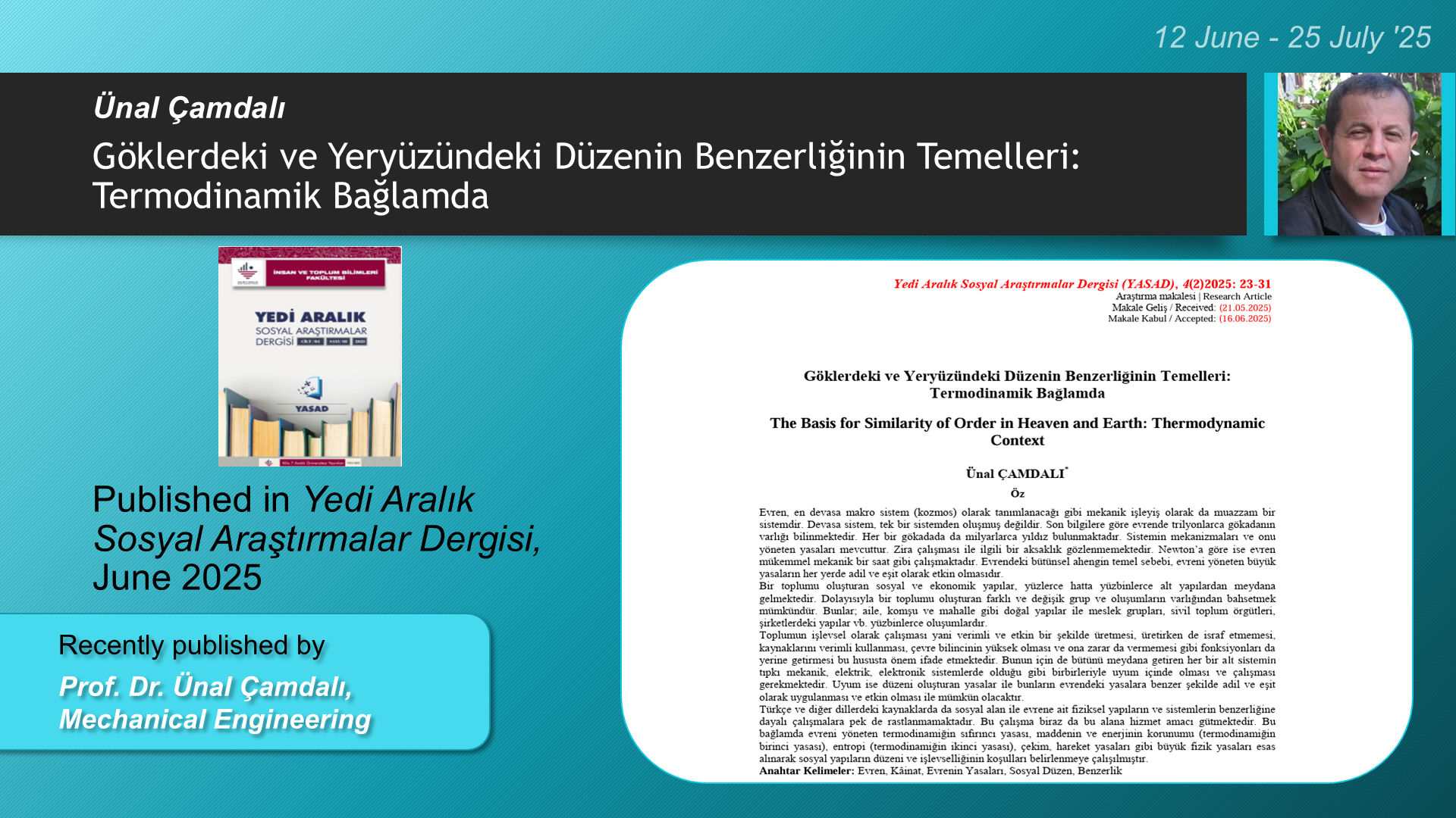Arabian Journal for Science and Engineering, Sayfalar 1-12 İTÜ’de Termodinamiğin İki Ustası: Ahmet Rasim Büyüktür ve Aksel Öztürk Ünal Çamdalı
