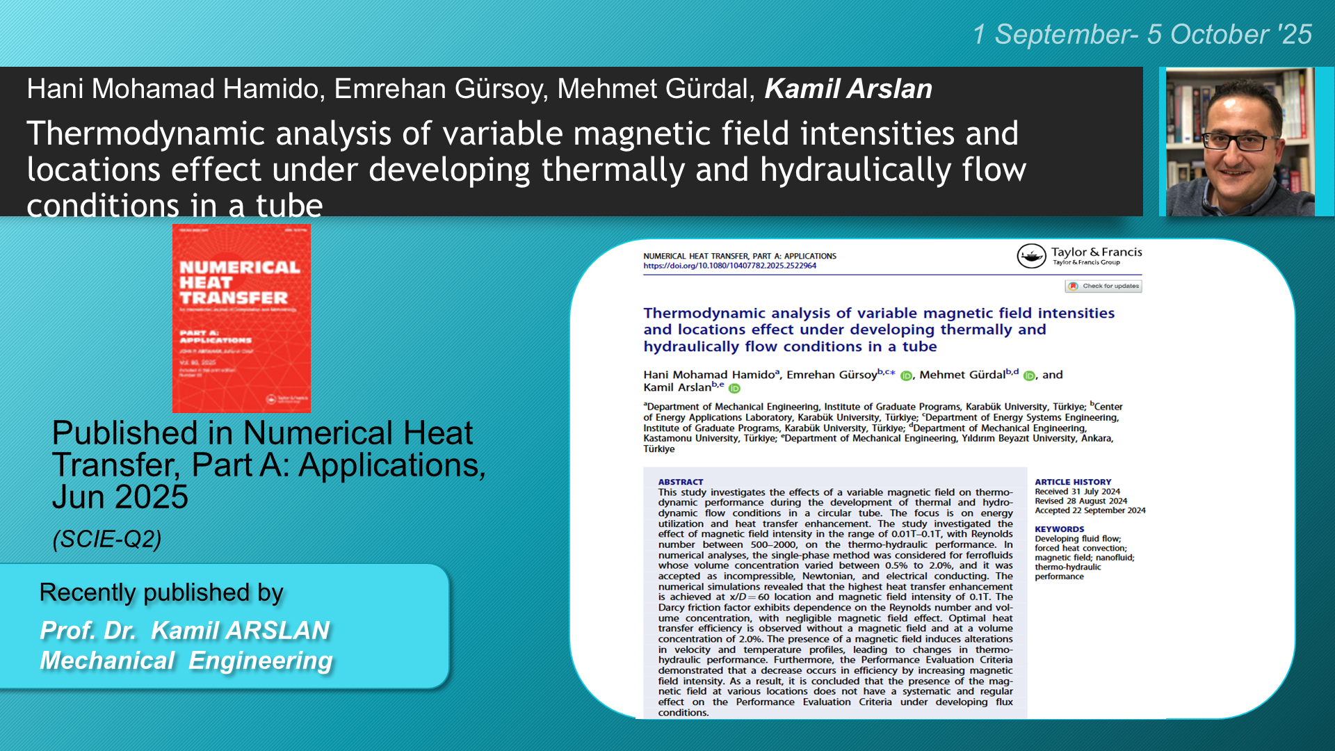 Numerical Heat Transfer, Part A: Applications, Sayfalar 1-25 Enhancement of thermal efficiency of a wet cooling tower using magnetite nanofluid with different stabilizers Berkman İşçi and Abdulghani Almaksour and Kıymet Yildirim and Nurettin Eltugral and Kamil Arslan