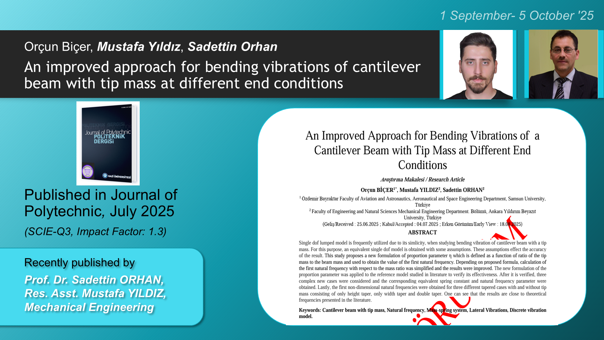 CIRP Journal of Manufacturing Science and Technology, Cilt 63, Sayfalar 83-96 An Improved Approach for Bending Vibrations of Cantilever Beam with Tip Mass at Different End Conditions Orçun Biçer and Mustafa Yıldız and Sadettin Orhan