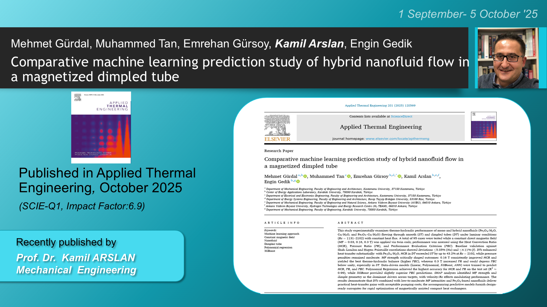 Information Sciences, Cilt 607, Sayfalar 901-920 Numerical investigation on turbulent flow and heat transfer characteristics of ferro-nanofluid flowing in dimpled tube under magnetic field effect Mehmet Gürdal and Hayati Kadir Pazarlıoğlu and Mutlu Tekir and Kamil Arslan and Engin Gedik
