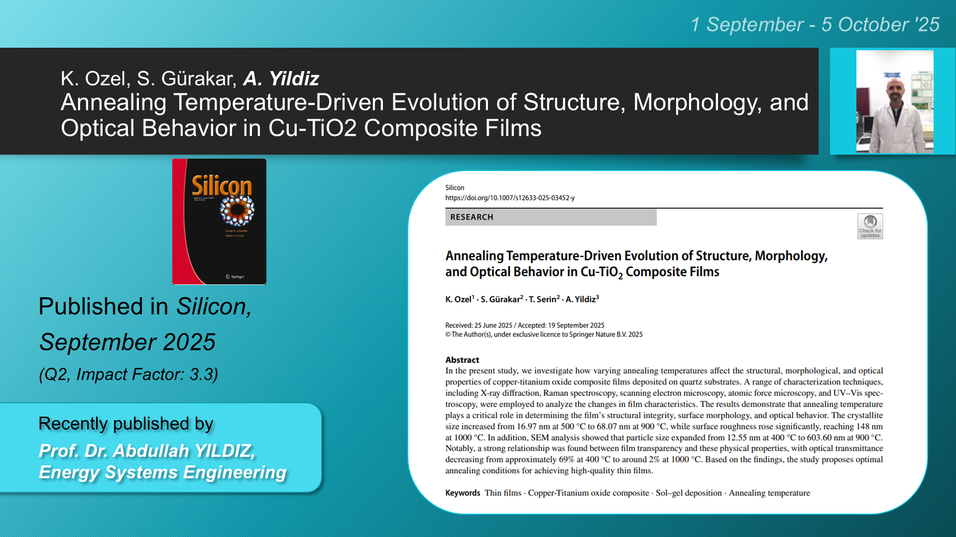 physica status solidi (a), Sayfalar 2500238 Annealing Temperature-Driven Evolution of Structure, Morphology, and Optical Behavior in Cu-TiO2 Composite Films K Ozel and S Gürakar and T Serin and A Yildiz
