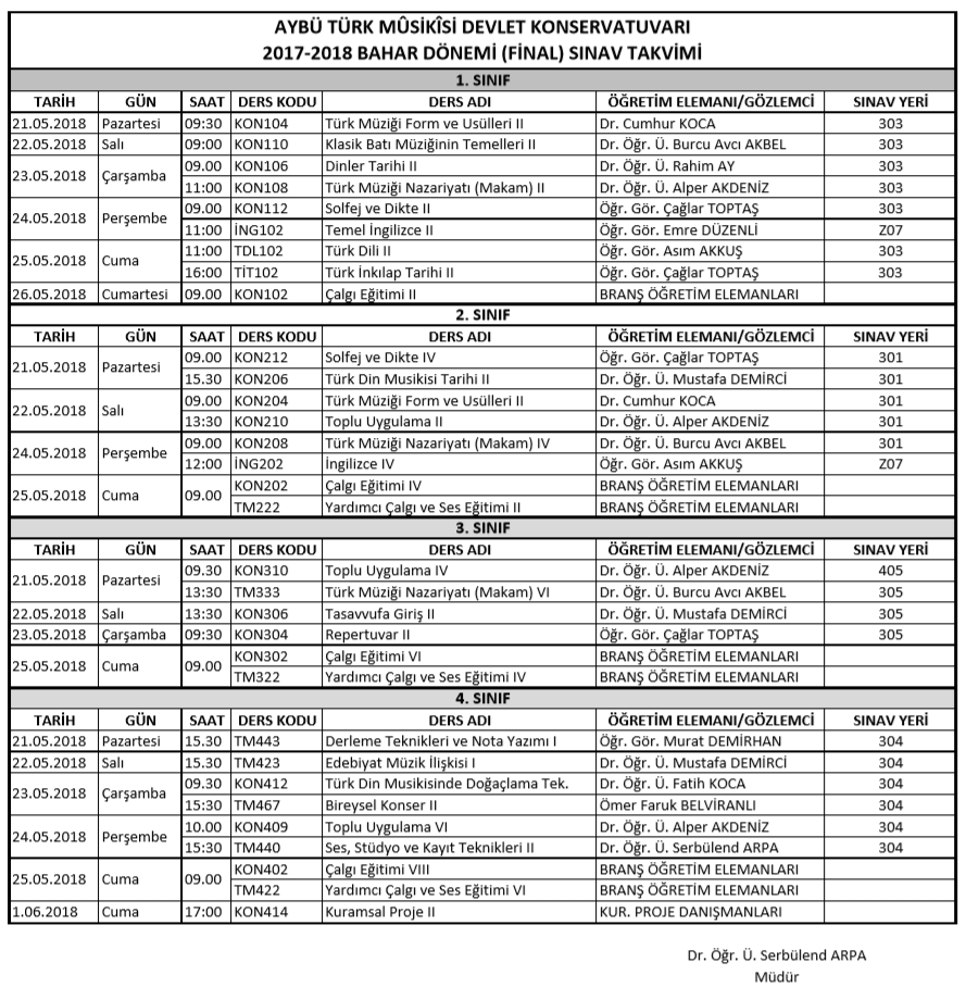 KONSERVATUVARIMIZ 2018 BAHAR FİNAL TAKVİMİ