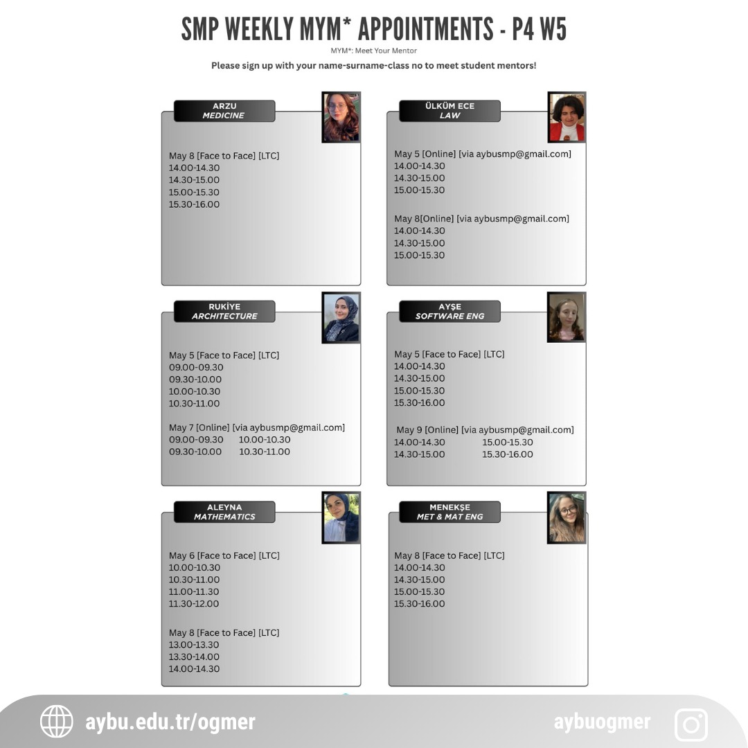 SMP Weekly MYM* Appointments - P4 W5