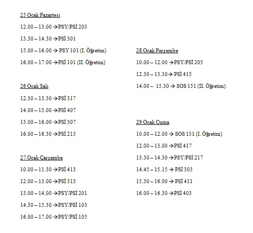 Öğrenci Görüşme Saatleri