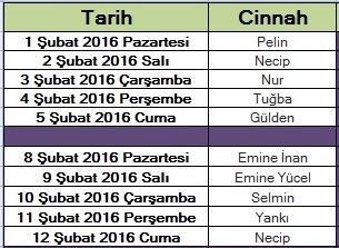 Şubat Ayı Nöbet Listesi - ilk yarı