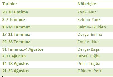 Yaz Dönemi Nöbet Listesi