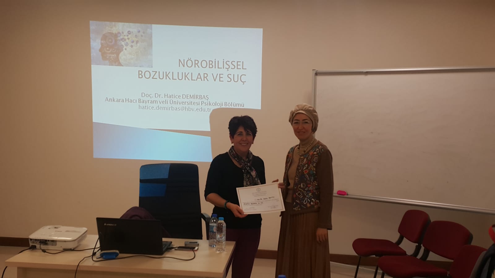 Doç.Dr. Hatice Demirbaş'ın katılımı ve Nörobilişsel Bozukluklar ve Suç konulu sunumuyla Psikoloji Seminerleri 27.02.2020'de başlamıştır.