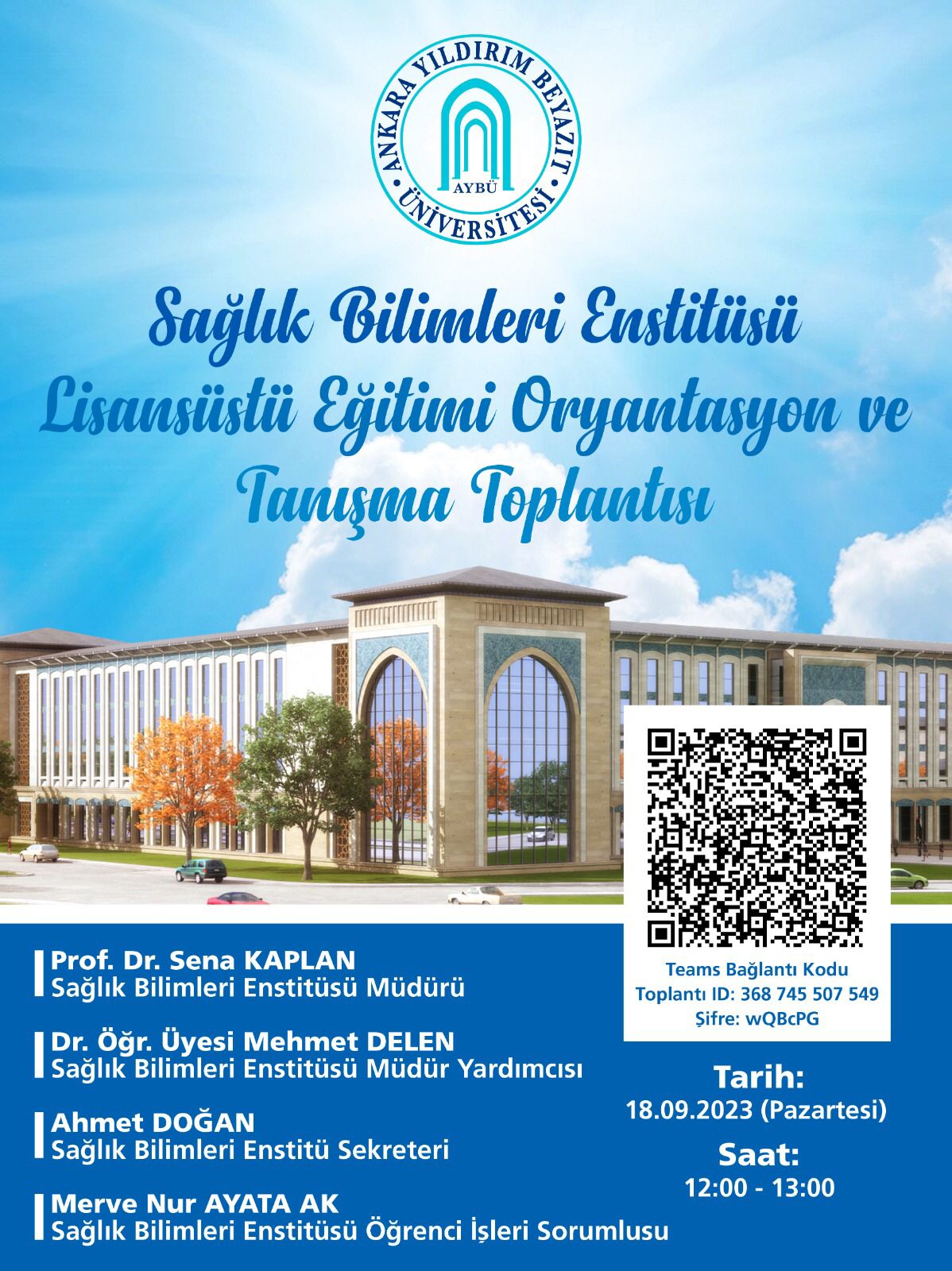 SAĞLIK BİLİMLERİ ENSTİTÜSÜ LİSANSÜSTÜ ÖĞRENCİLERİ İÇİN ORYANTASYON VE TANIŞMA TOPLANTISI 18.09.2023 TARİHİNDE GERÇEKLEŞTİRİLECEKTİR.