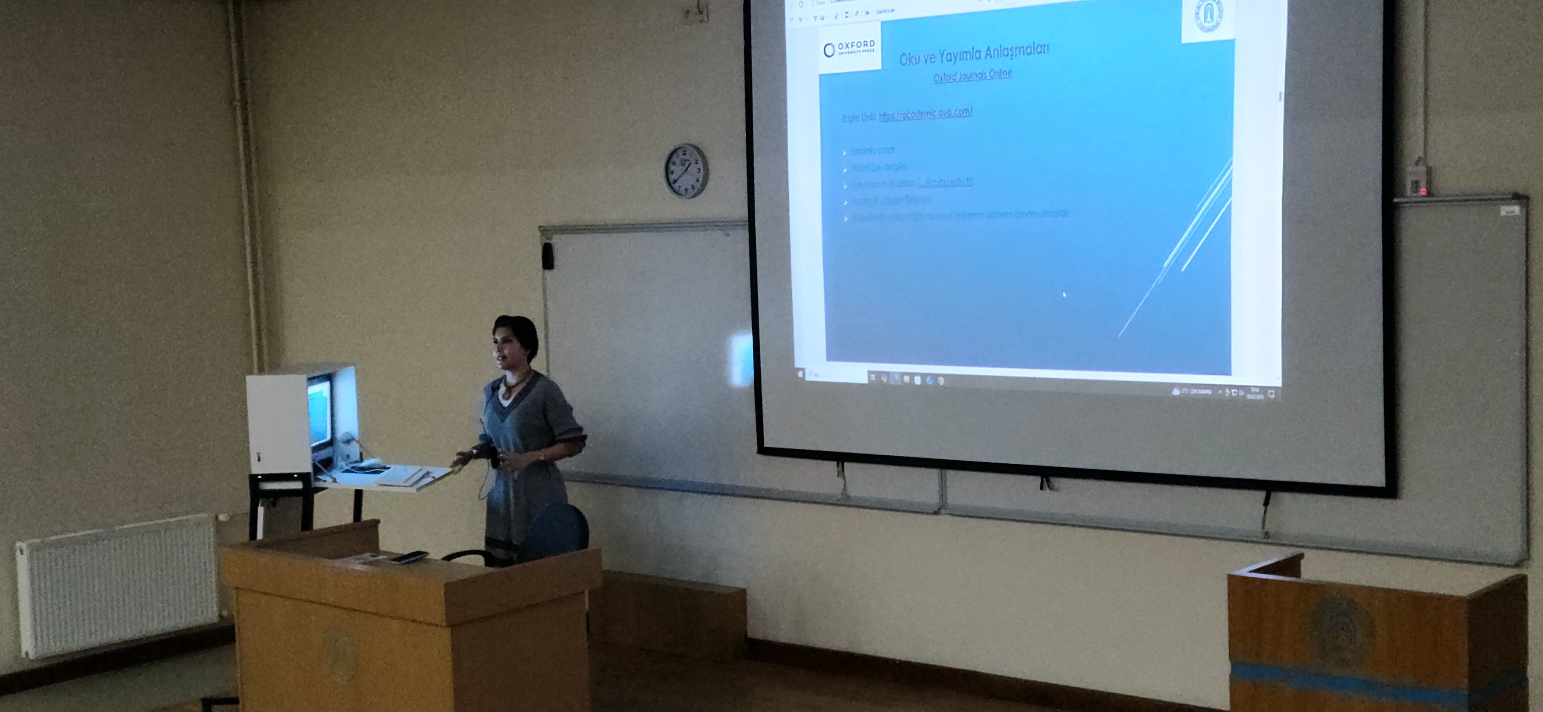Üniversitemiz Kütüphane ve Dokümantasyon Daire Başkanlığından Veri Tabanı Sorumlusu Esra ÇALIŞ'ın sunumuyla Fakültemiz öğretim elemanlarına Oku-Yayımla Anlaşmaları kapsamında bilgi verildi.