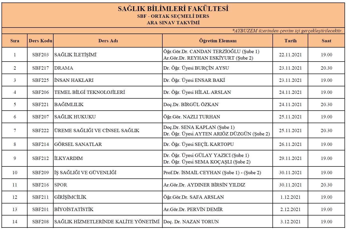 "Ortak Seçmeli Dersler" Ara Sınav Tarihleri