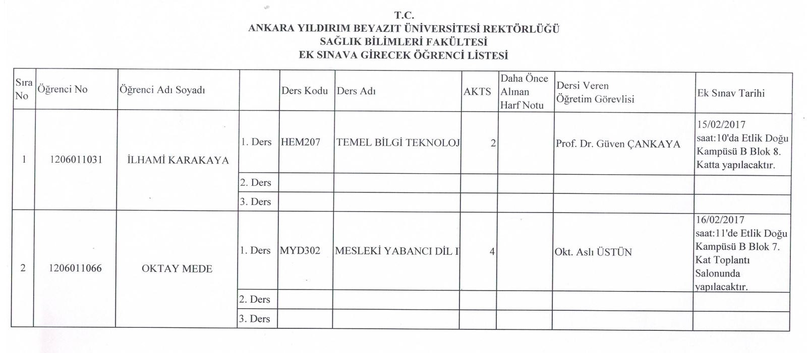 Ek Sınava Girecek Öğrencilerin Dikkatine