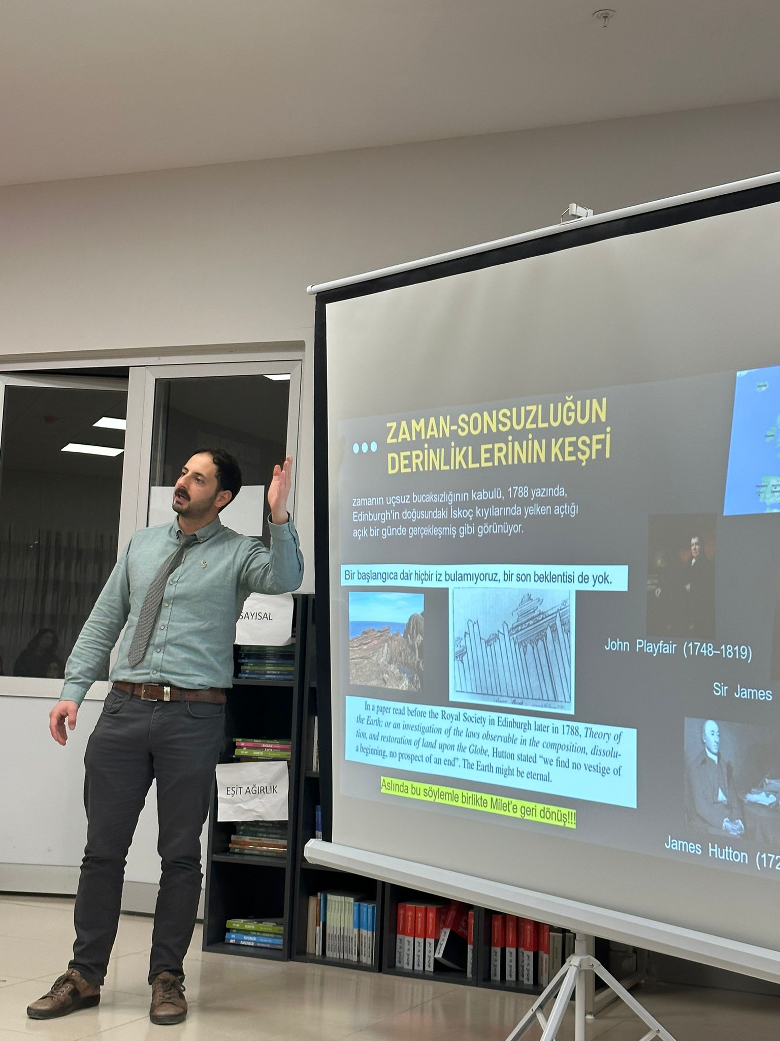 Dr. Öğr. Üyesi Yeseren Saylan (Hacettepe Üniversitesi - Kimya Bölümü), Dr. Ögr. Üyesi Fatih İnci (Bilkent Üniversitesi - Malzeme Bilimi ve Nanoteknoloji Enstitüsü- UNAM- TUBA GEBIP 2021), Doç. Dr. Eren Sahiner (Ankara Üniversitesi - Yer Bilimleri Uygulama ve Arastirma Merkezi) ile Dr. Pilot Garbis Atam Akceoğlu katıldı. Fakültemiz Dekan Yrd. Doç. Dr. Dilek Altun moderatör olarak katıldı. Üç saat süren söylesi kapsamında Genç Bilim İnsanlari , genetik mühendisliği, kimya, nükleer fizik, Bilimsel tarihlendirme konularinda sunumlarini paylastilar. Söyleşi de öğrencilerin kariyer planlama ve bölüm seçimi konusunda sorularına yer verildi.