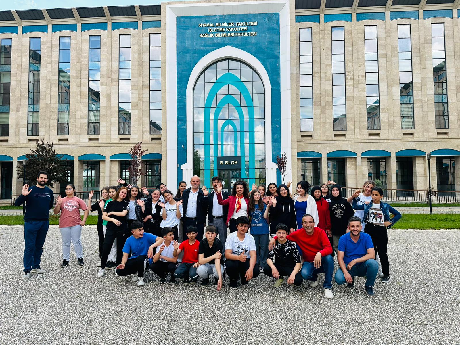 Dumlupınar İlkokulu ve Ortaokulu Müdürü Murat Yumus ve LGS sınavına girecek ogrencilerimiz sınav öncesi motivasyon amacıyla üniversitemizi ziyaret etti. Kampüs turunun ardından, sınav stresini azaltmak uzere kısa bir söyleşi yapıldı. Program, öğrencilerin kampüsümüzde öğle yemeklerini yemeleri ile son buldu.