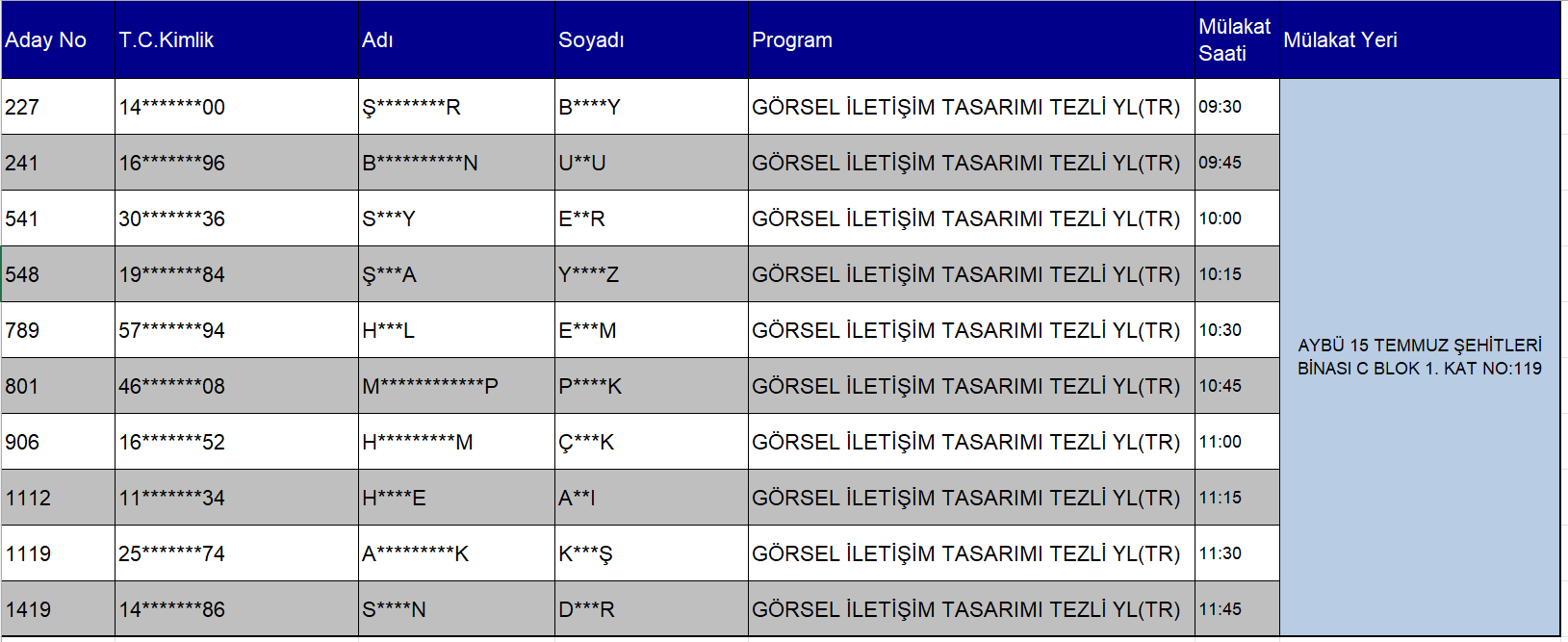 GÖRSEL İLETİŞİM SANAT TASARIMI TEZLİ YÜKSEK LİSANS SINAVINA GİRECEK OLAN ADAYLARIN SINAV YERİ VE SAATİ İÇİN TIKLAYINIZ