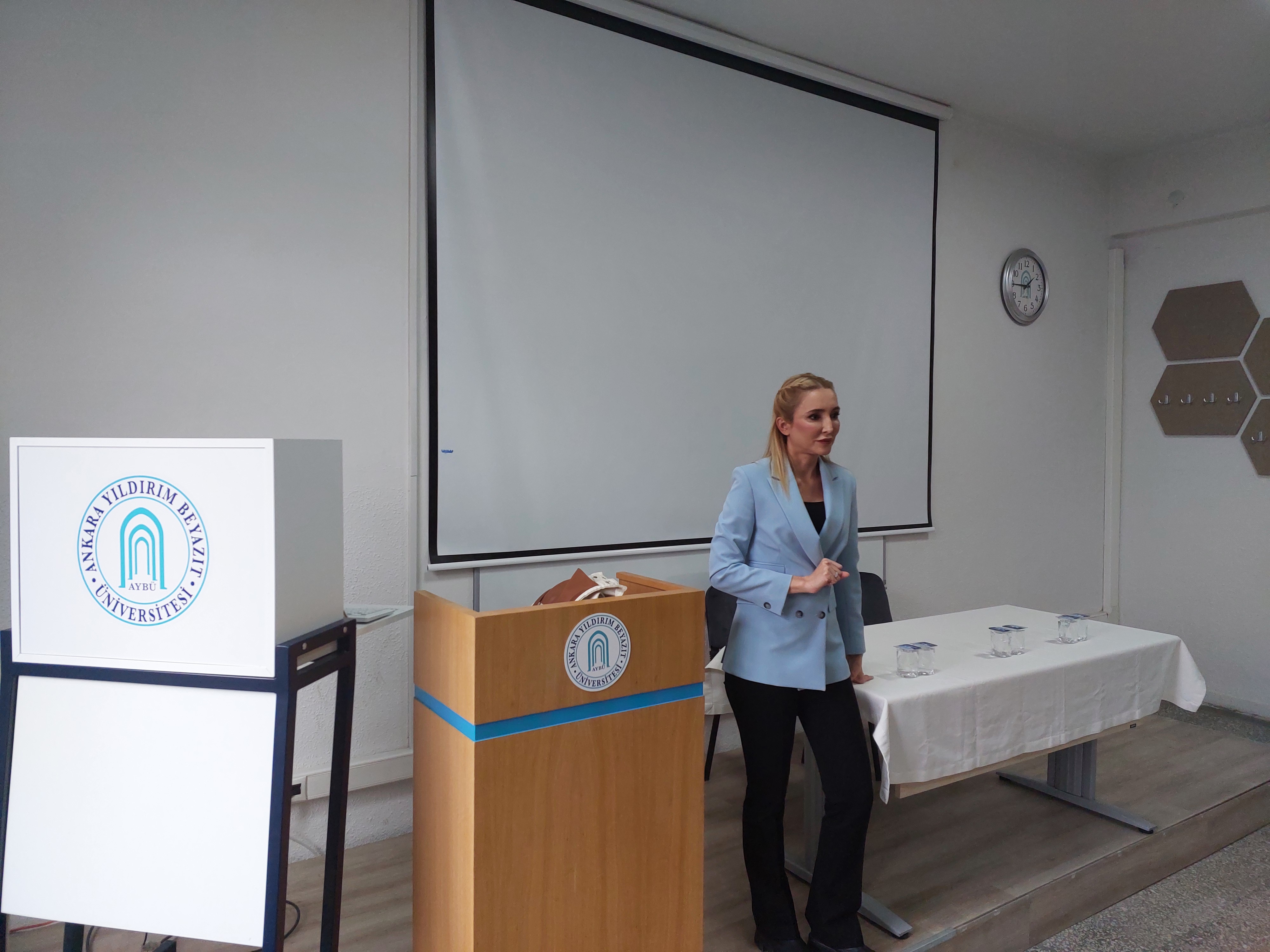 TRT Haber Spikeri Oya Eren Özkan, Halkla İlişkiler ve Tanıtım Programı 1. sınıf öğrencilerimizle bir araya gelerek kariyer yolculuğunu ve mesleki birikimlerini paylaştı. Eğitim sürecindeki zorluklar ve güzel anılar üzerinden öğrencilerimize rehberlik eden Özkan, klasik filoloji ile başlayıp iletişim alanında şekillenen kariyer hikayesini aktardı.