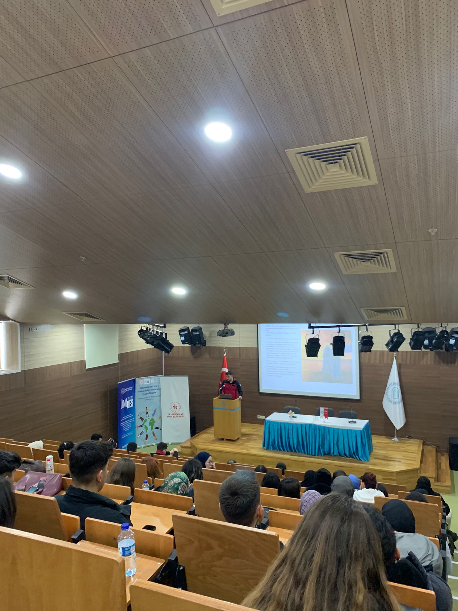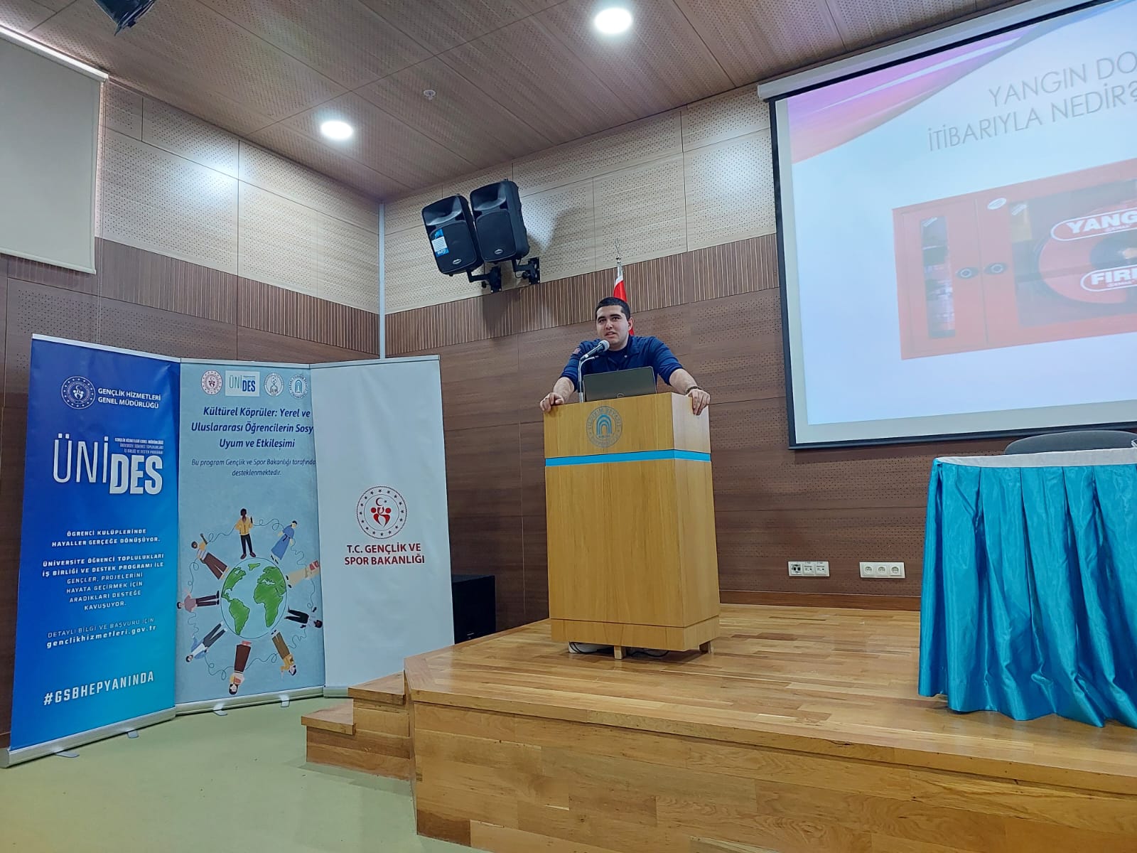 A Blok Konferans Salonunda gerçekleştirilen eğitime farklı fakülte ve bölümlerden birçok öğrenci yoğun ilgi gösterdi. Program, Sosyoloji Topluluğundan Ayşenur Yıldırım’ın Kartalkaya Yangın Faciası'nda hayatını kaybeden yurttaşları anmasıyla başladı. Sivil Savunma ve İtfaiyecilik Programı öğrencileri, yangın güvenliği konusunda önemli bilgileri dinleyicilerle paylaştı. Tolga Yiğit Arslan, yanma olaylarının temel boyutlarını ve söndürme-soğutma tekniklerini anlattı. Burak Kurt, yangın öncesinde alınması gereken önlemler hakkında detaylı bilgi verdi ve ev içi yangın risklerine dikkat çekti. Halil İbrahim Erdoğan, aktif ve pasif yangın sistemleri hakkında bilgilendirici bir sunum yaptı. Berkay Arif Tota, yangın dolaplarının kullanımını detaylandırdı. İsmail Yılmaz, yangın söndürme cihazlarının türlerini ve kullanım yöntemlerini teorik olarak aktardı.