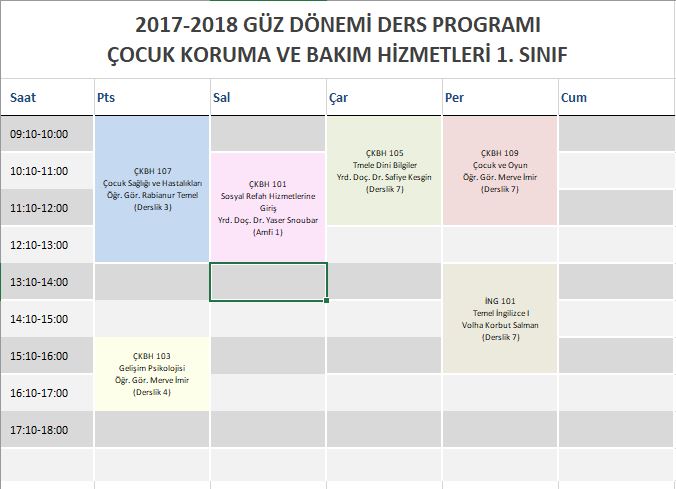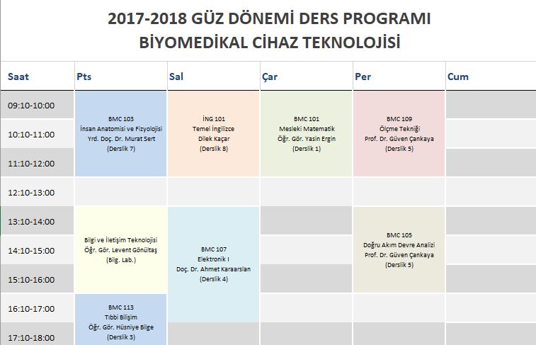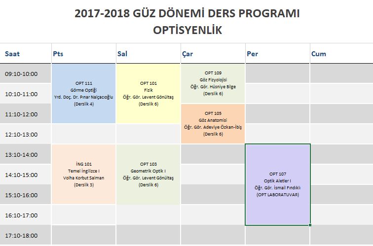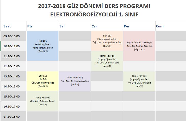 DERS PROGRAMLARI GÜNCELLENMİŞTİR (29.09.2017)