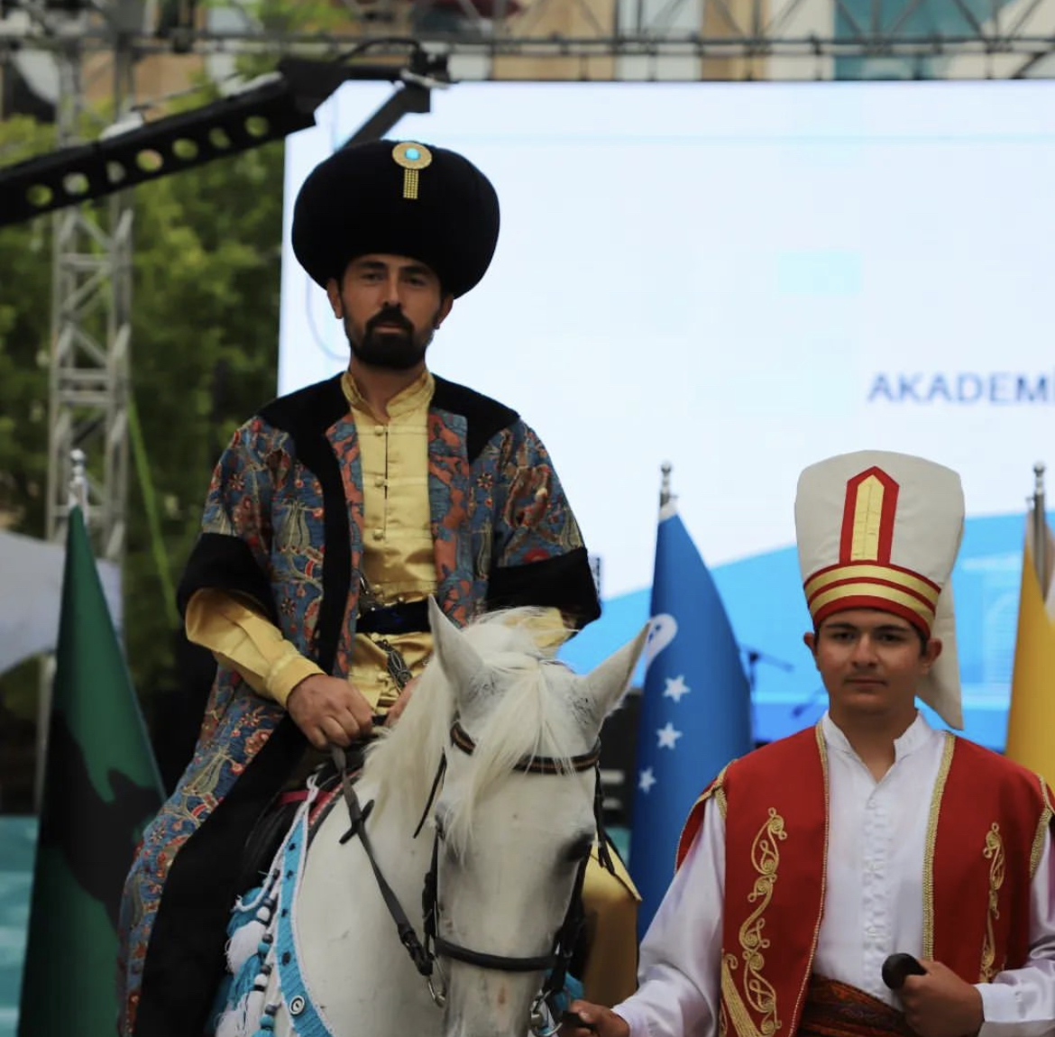 Atçılık ve Antrenörlüğü programının organize ettiği bir karşılama töreni yapıldı. İki yeniçeri askeri ve Yıldırım Beyazıt Han’ı temsilen bir hocamız atla tören alanına giriş yaptı. Tören alanına yerleştirilen 16 Türk devletini temsilen 16 bayrağı ise yüksekokulumuzda dereceye giren 16 öğrenci tuttu. Ardından saygı duruşu ve İstiklal marşının söylenmesi ise törene geçildi.