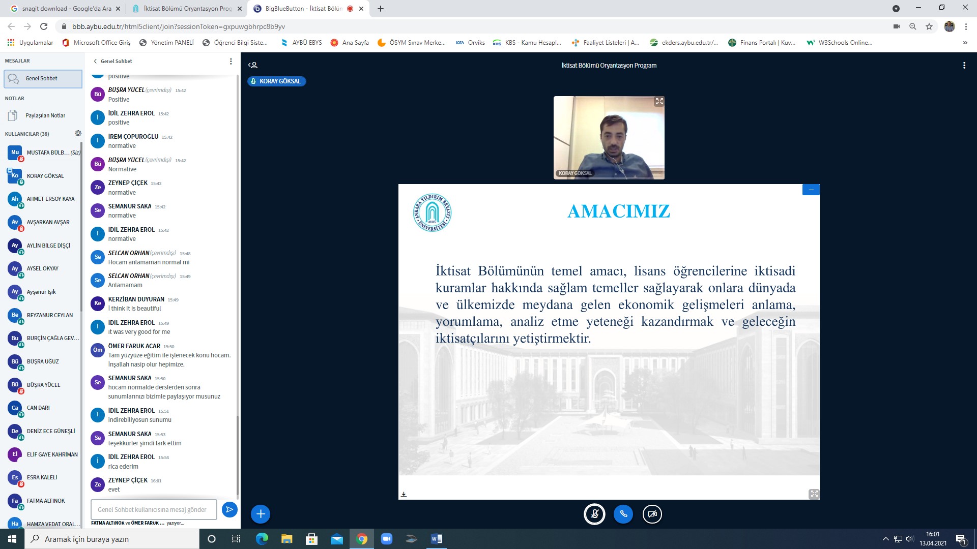 Fakültemiz İktisat Bölümü hazırlık sınıfı öğrencilerine Oryantasyon Programı yapıldı. Katılan öğrencilerimize, programın hazırlanmasında emeği geçen Yabancı Diller Yüksekokulu, AYBUZEM ve Fakültemiz idari personeline ve programı organize eden, Fakülte ve İktisat Bölüm tanıtımı ile örnek ders anlatımı gerçekleştiren Dr. Öğr. Üyesi Koray GÖKSAL'a teşekkür ediyoruz.