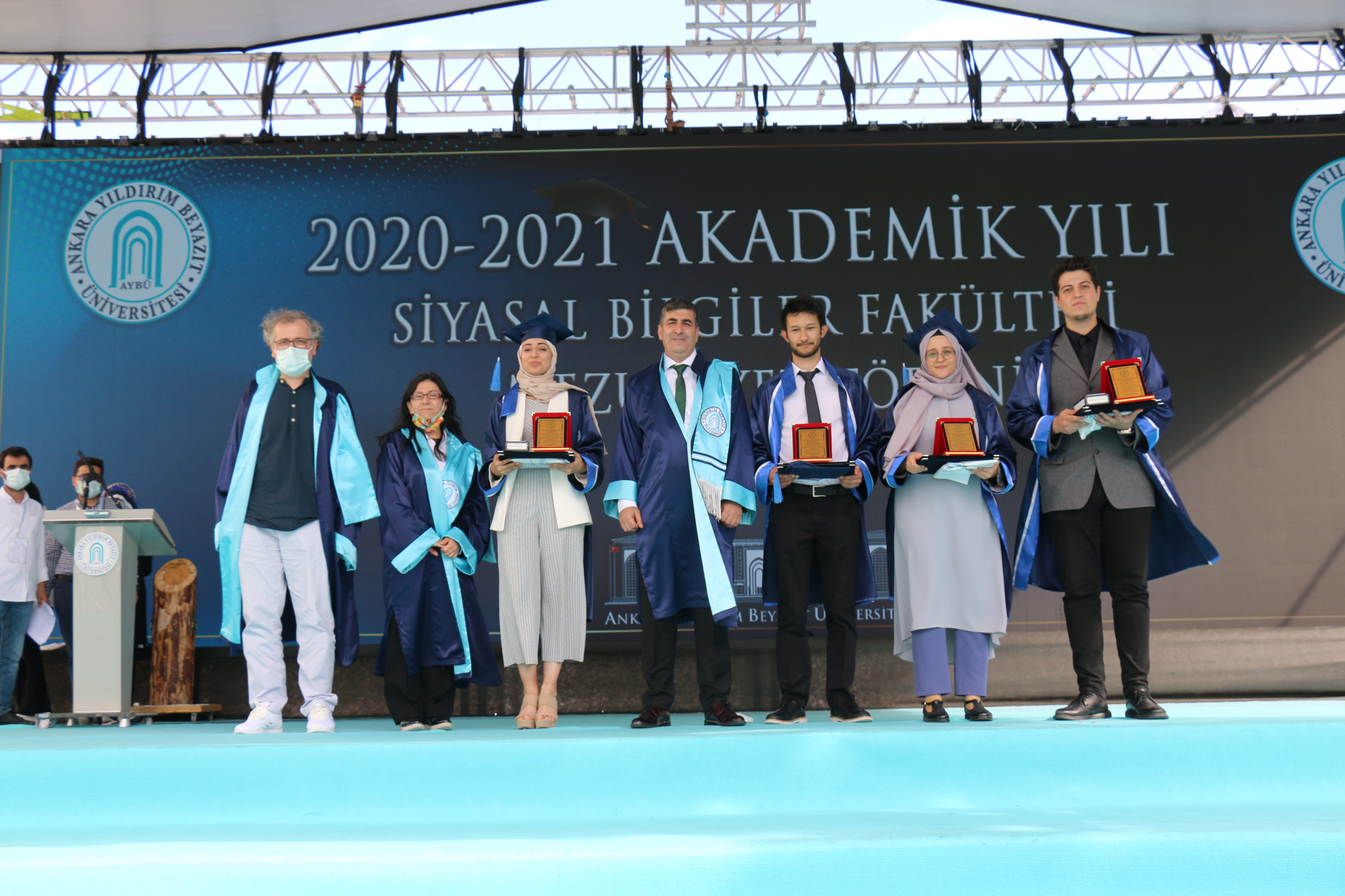 Ankara Yıldırım Beyazıt Üniversitesi Siyasal Bilgiler Fakültesi programlarını başarıyla tamamlayan 2019- 2020 ve 2020-2021 yılları öğrencilerimiz için düzenlenen Mezuniyet Töreni’ 7 Temmuz 2021 tarihinde Ankara Yıldırım Beyazıt Üniversitesi Esenboğa Külliyesi’nde gerçekleştirildi. Saygı duruşu ve İstiklal Marşı ile başlayan mezuniyet törenimiz 2019-2020 akademik yılı fakülte birincisi Anna Shairova ve 2020-2021 akademik yılı fakülte birincisi Fırat Dereli’nin mezuniyet konuşmaları ile devam etti. Fakülte birincilerinin konuşmalarının ardından Siyasal Bilgiler Fakültesi Dekanımız Prof. Dr. Kudret Bülbül ve Ankara Yıldırım Beyazıt Üniversitesi Rektörümüz Prof. Dr. İbrahim Aydınlı konuşmalarını yaptılar.
