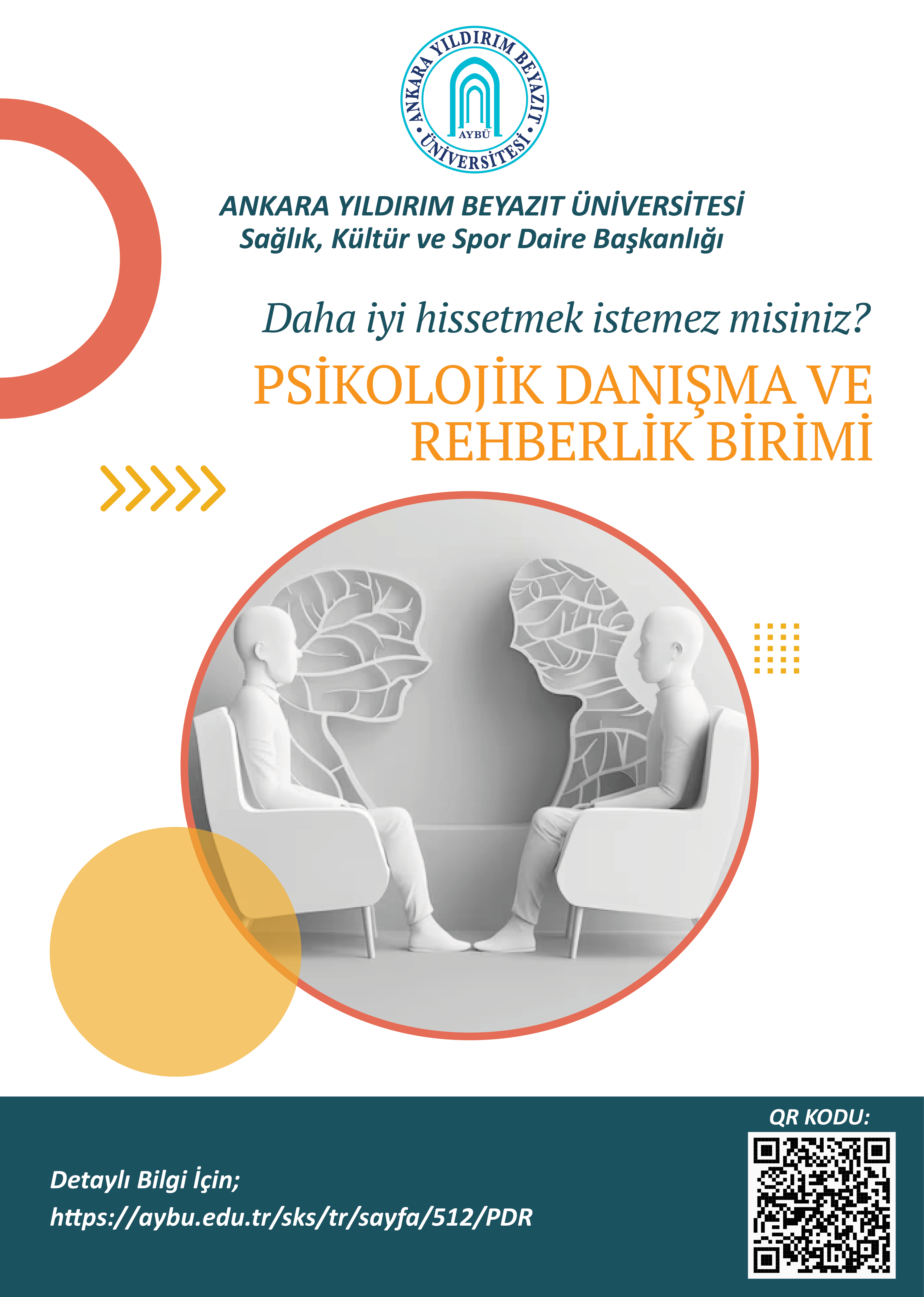 Ankara Yıldırım Beyazıt Üniversitesi Psikolojik Danışma ve Rehberlik Birimi olarak yeni eğitim öğretim yılında siz değerli öğrencilerimize psikolojik danışmanlık ve rehberlik hizmeti vermeyi sürdürüyoruz.