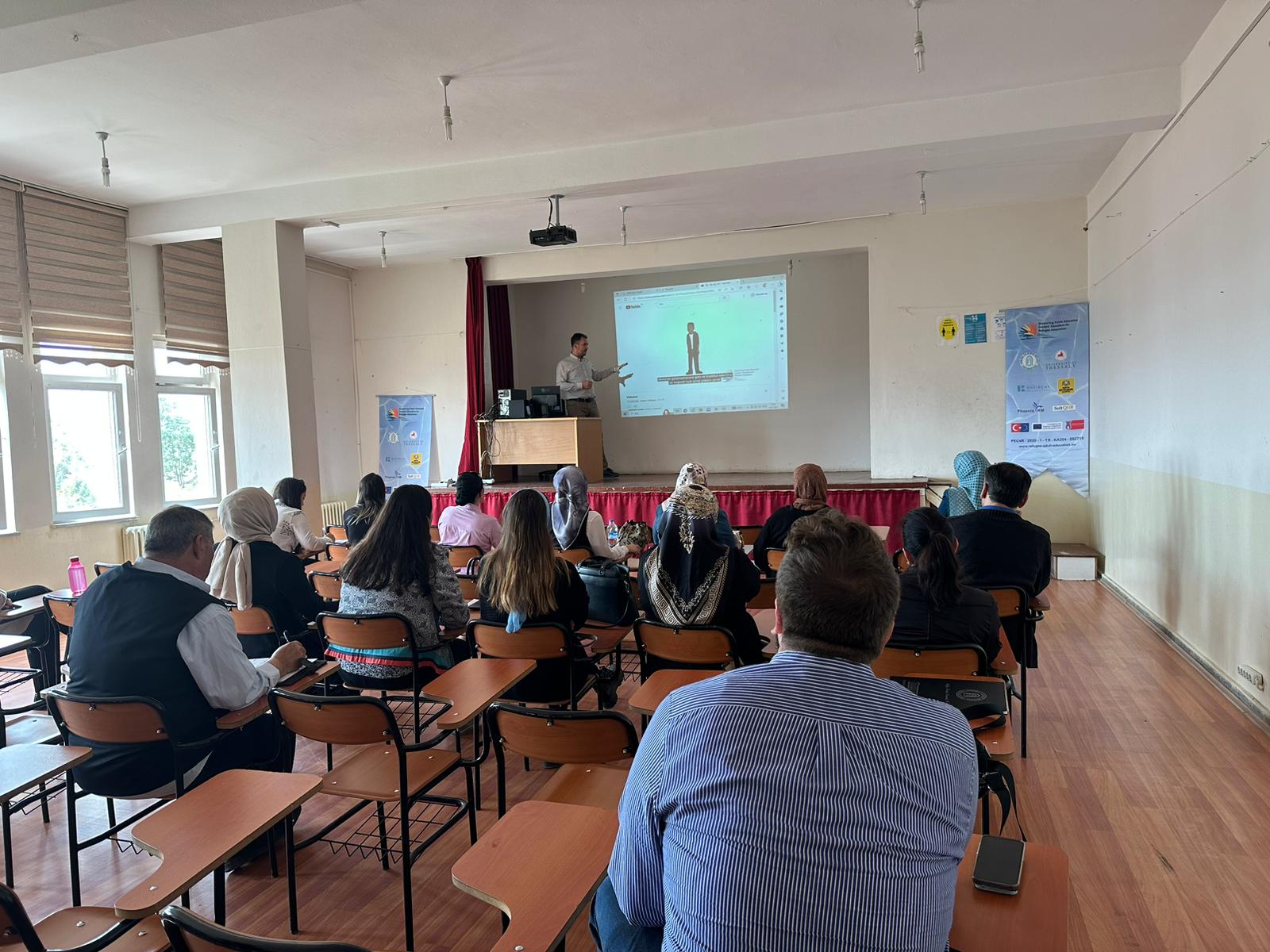 Üniversitemiz koordinatörlüğünde, Rekabet ve İnovasyon Merkezi tarafından Avrupa  Birliği  Erasmus+  tarafından  desteklenen, Türkiye'den  Konya  Büyükşehir  Belediyesi  ve  İzmir  Bakırçay  Üniversitesi yurtdışından Belçika, Yunanistan ve Sırbistan'dan ilgili partnerler ile birlikte yürütülen "Supporting Public  Education  Centers'  Educators  for  Refugee  Adaptation"  (Halk  Eğitim  Merkezlerinin Eğitmenlerinin Mülteci Uyumuna Yönelik Desteklenmesi) projesi kapsamında 11 Mayıs 2023 Perşembe günü  saat  11:00  da  Şereflikoçhisar  Uygulamalı  Bilimler Fakültesi Konferans  Salonun'da   Fakültemiz ve Berat Cömertoğlu Meslek Yüksekokulu akademik personeli ile birlikte Şereflikoçhisar Kaymakamlığı destekleri ile Halk Eğitim merkezinde  Halk Eğitim Merkezi eğitmenlerine proje  amaçları  ve kazanımları hakkında bilgilendirme semineri yapılmıştır.